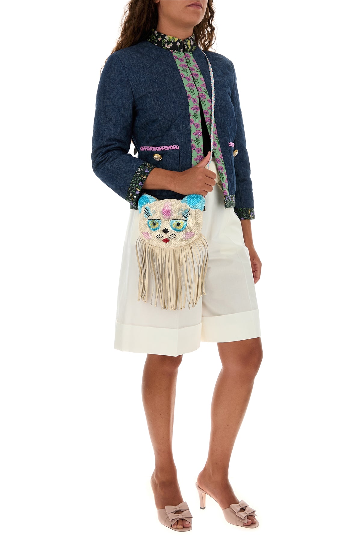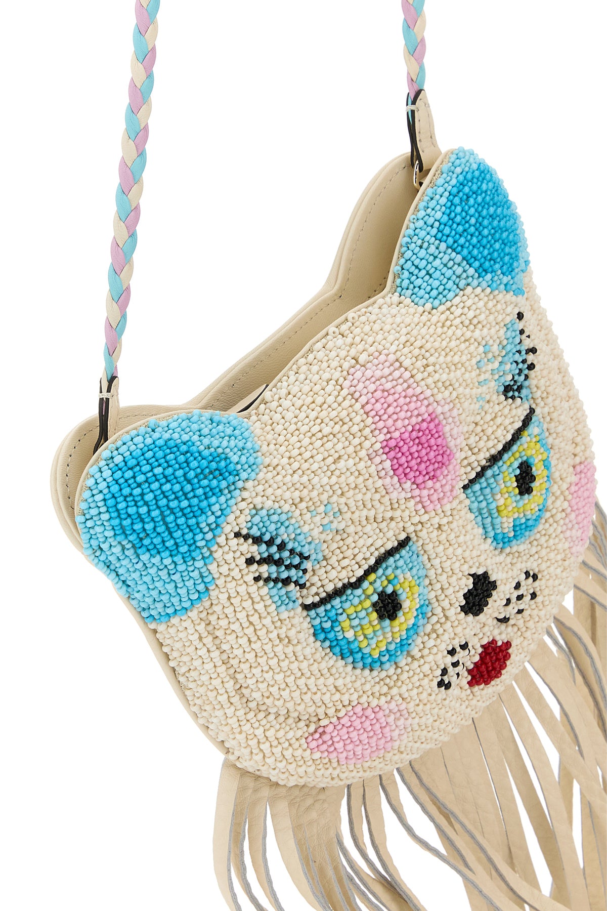 Crossbody bag realized in ovine leather entirely covered by beads enriched by fringes on the hemline.