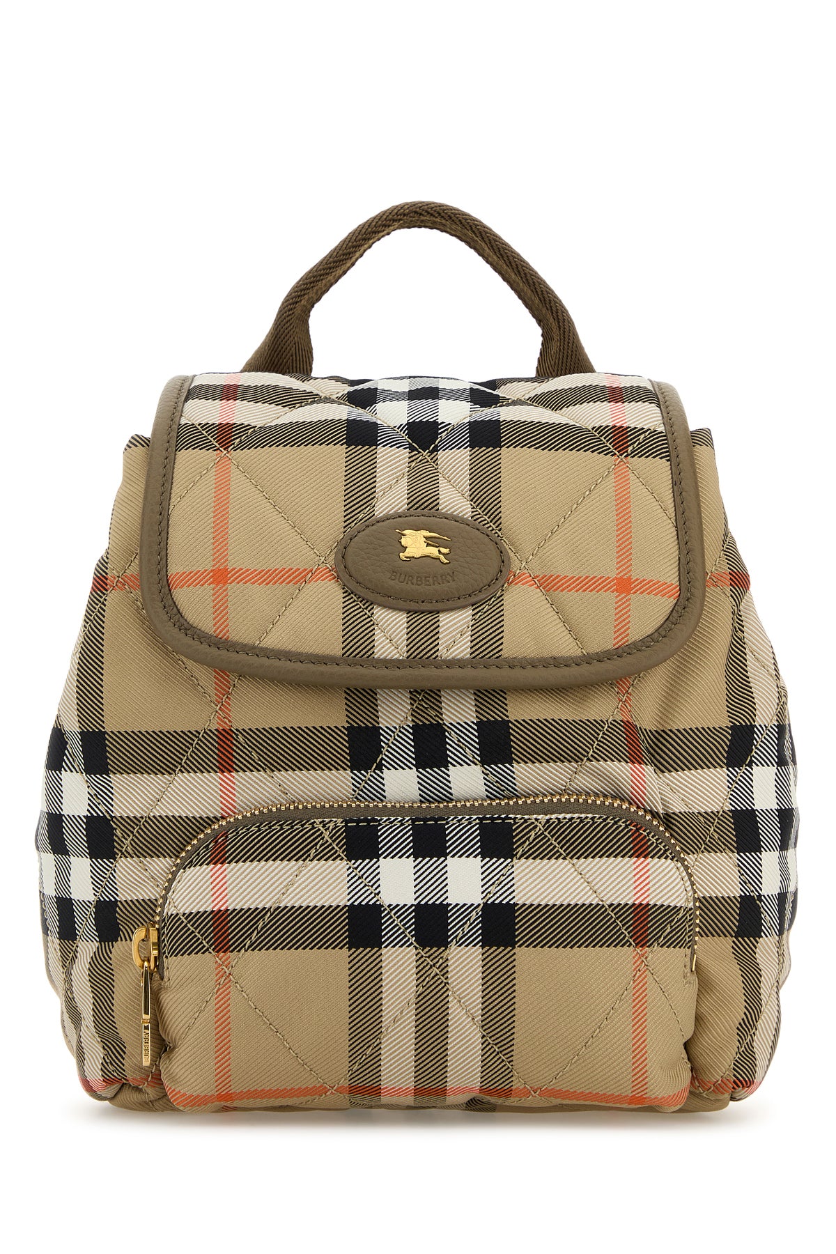 Backpack realized in quilted canvas characterized by Burberry Check embroidery on the entire surface enriched by Equestrian Knight patch at the front.