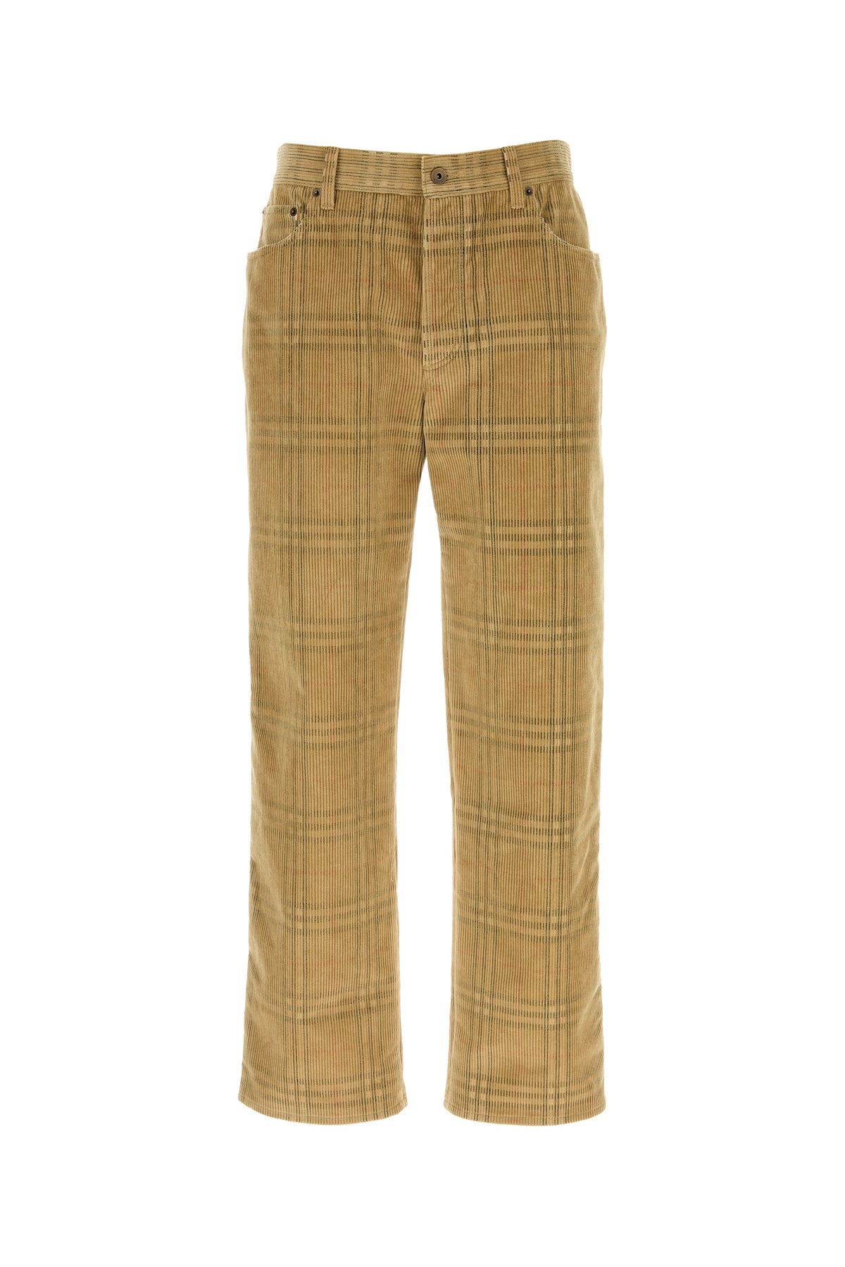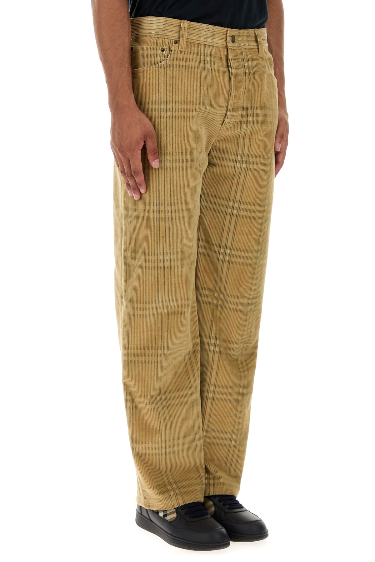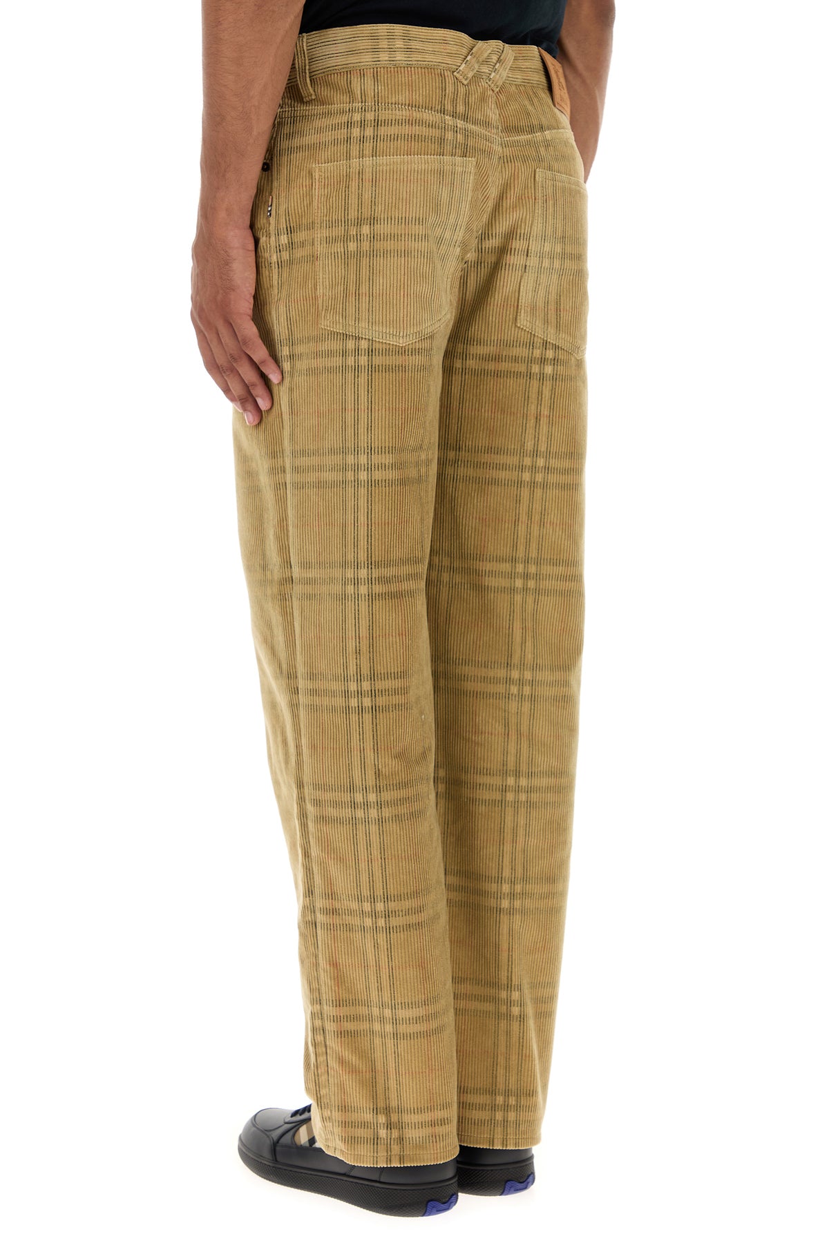 Pant realized in pure cotton corduroy characterized by Burberry Check motif embroidery on the entire surface enriched by suede Equestrian Knight label at the back.