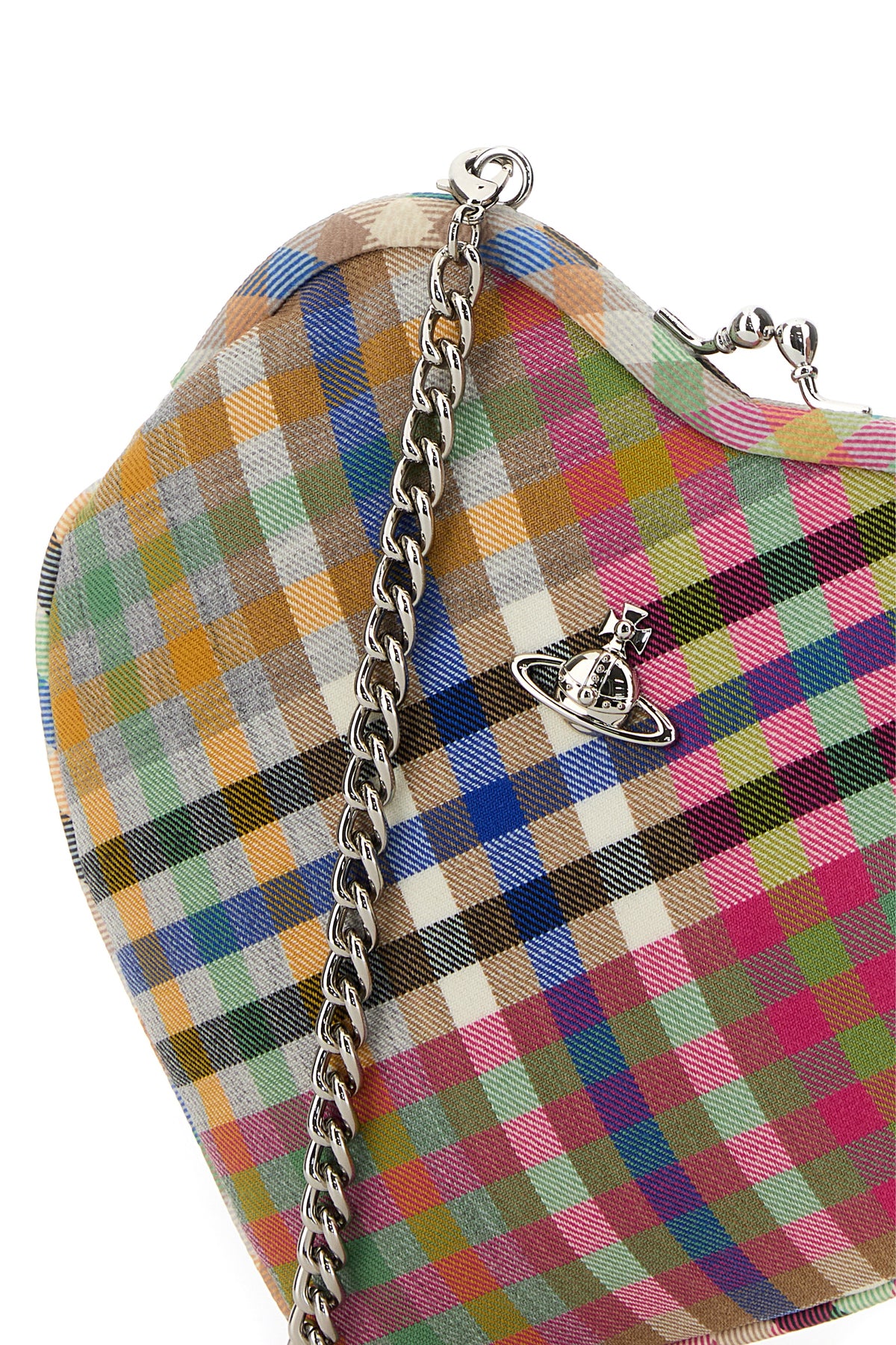 Handbag realized in fabric characterized by checked embroidery on the entire surface enriched by Orb metal detail at the front.