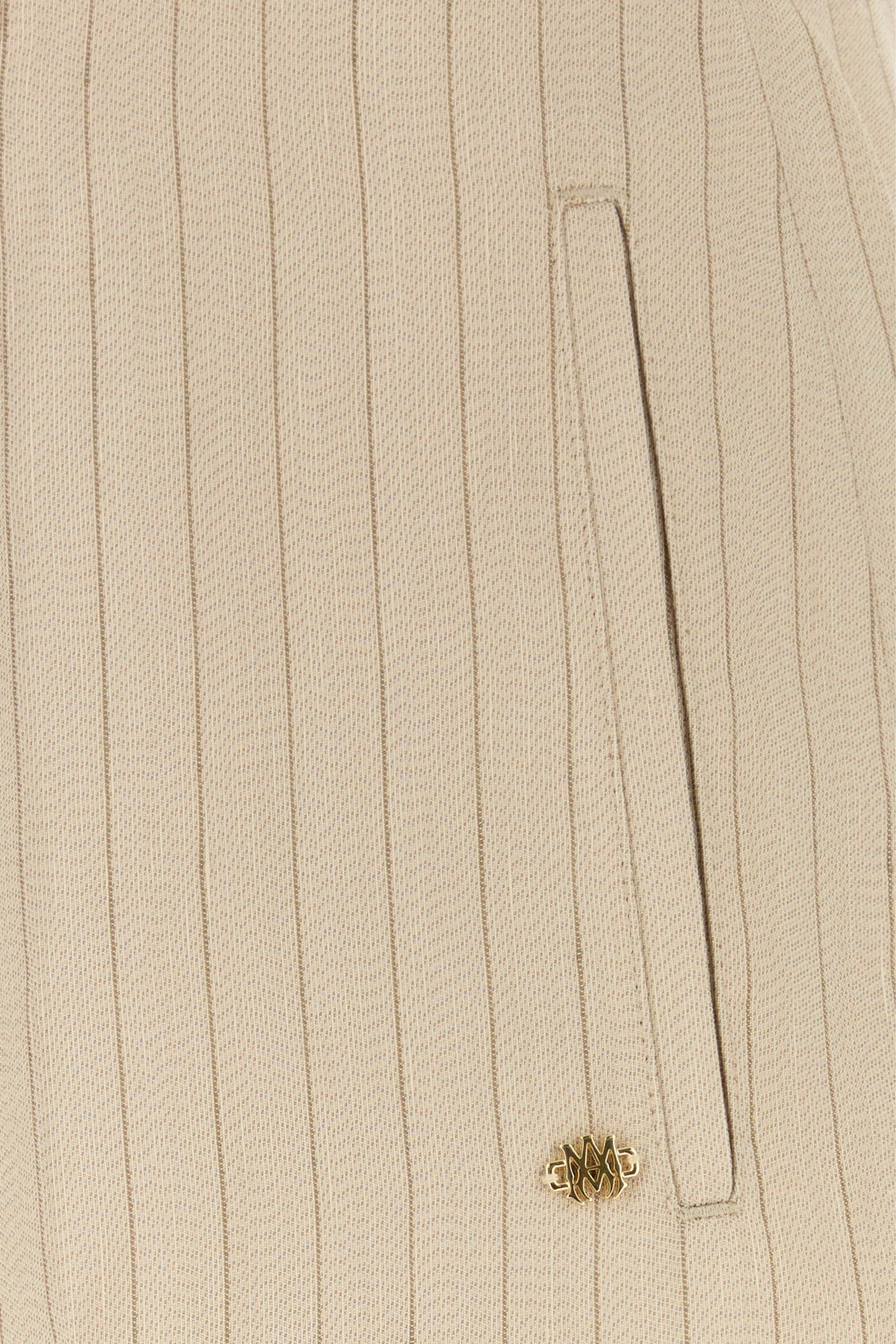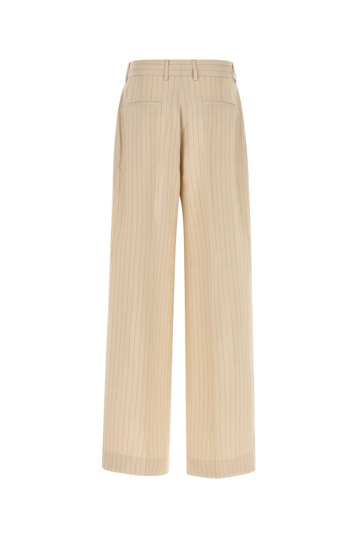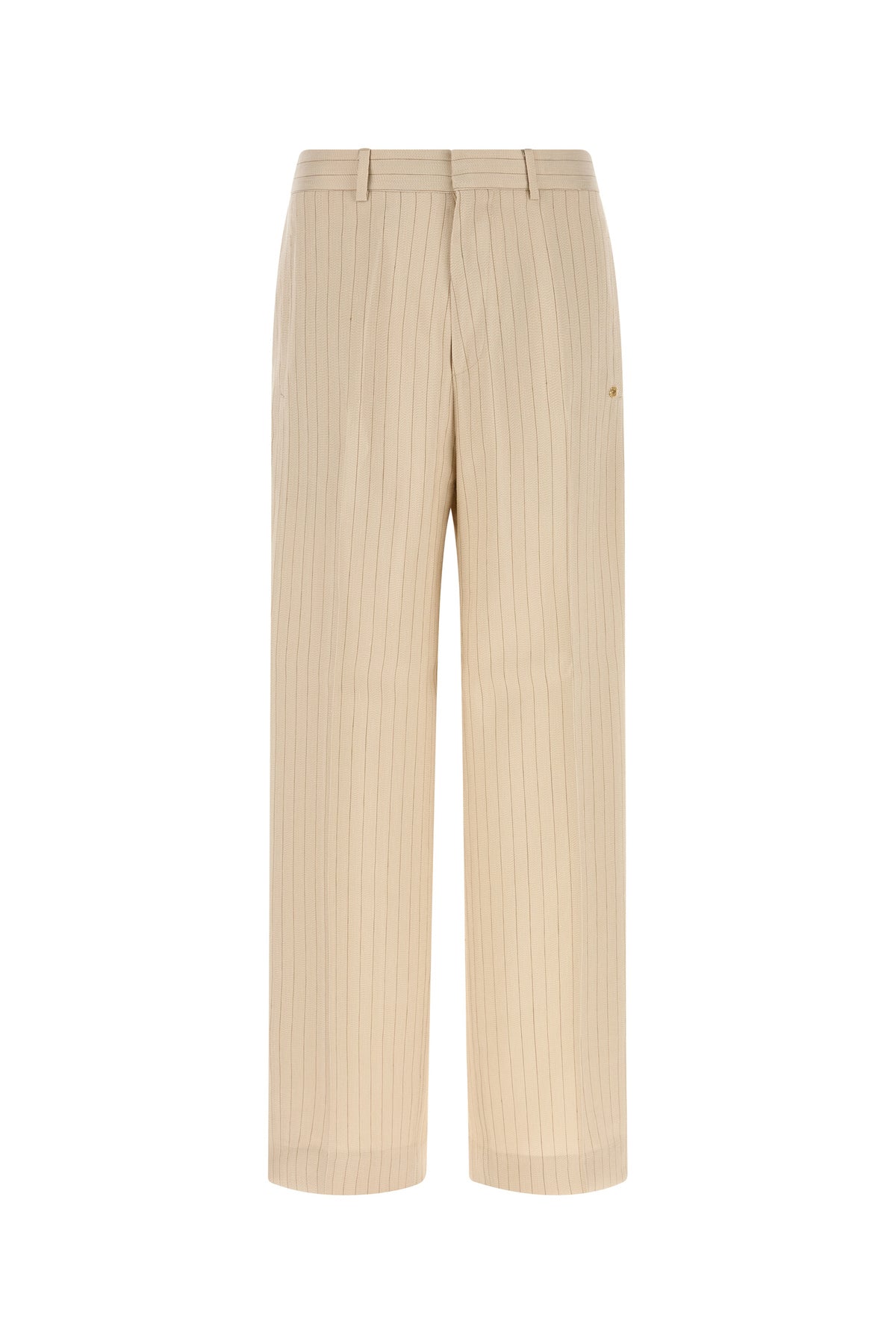 Wide-leg pant realized in viscose and linen jersey characterized by striped embroidery on the entire surface enriched by metal lettering logo at the front.