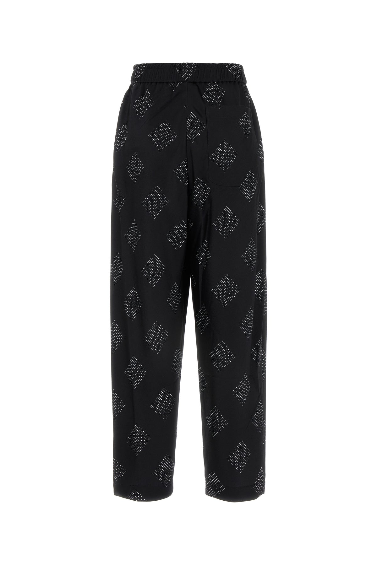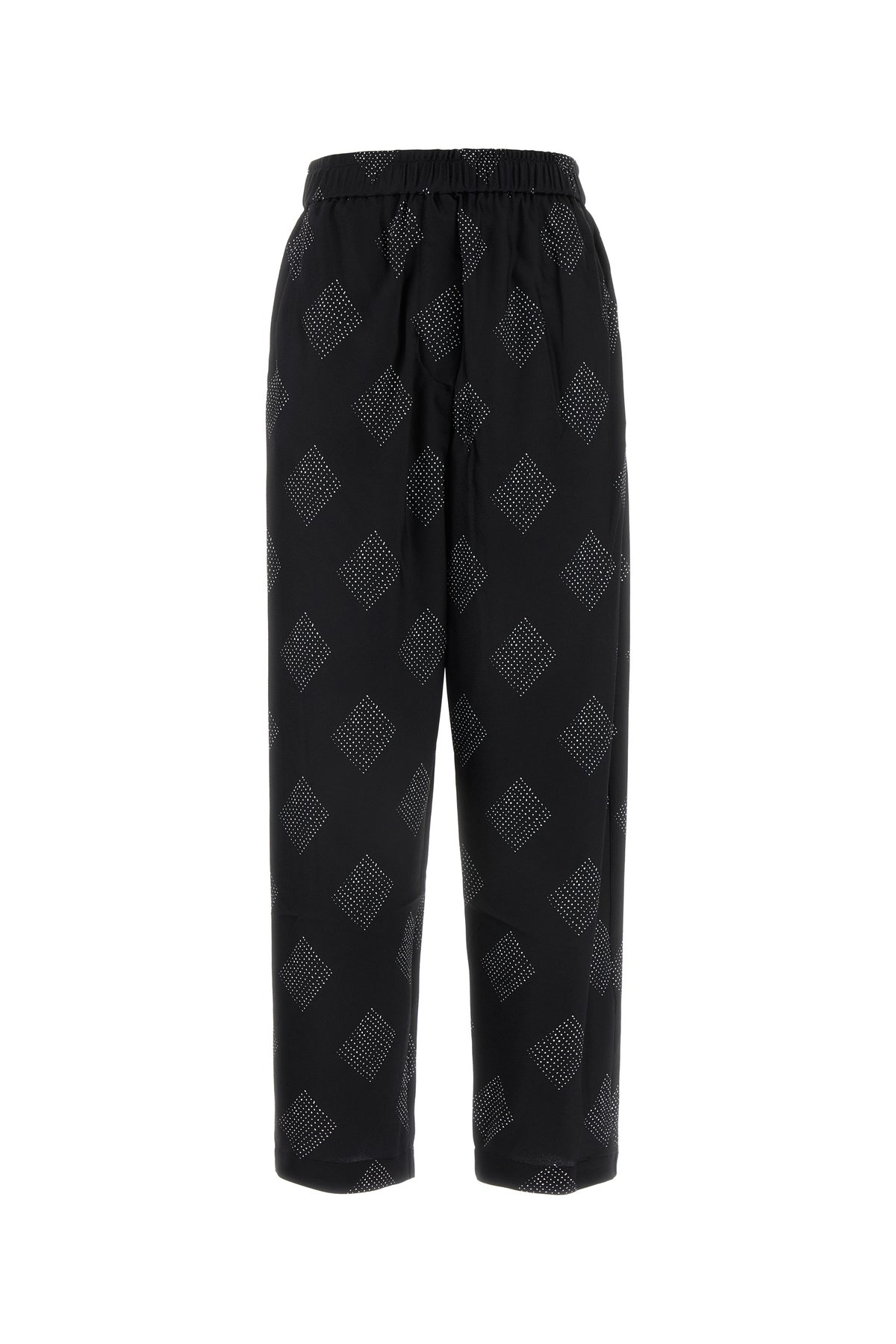 Pant realized in stretch silk characterized by peculiar embroidery on the entire surface.