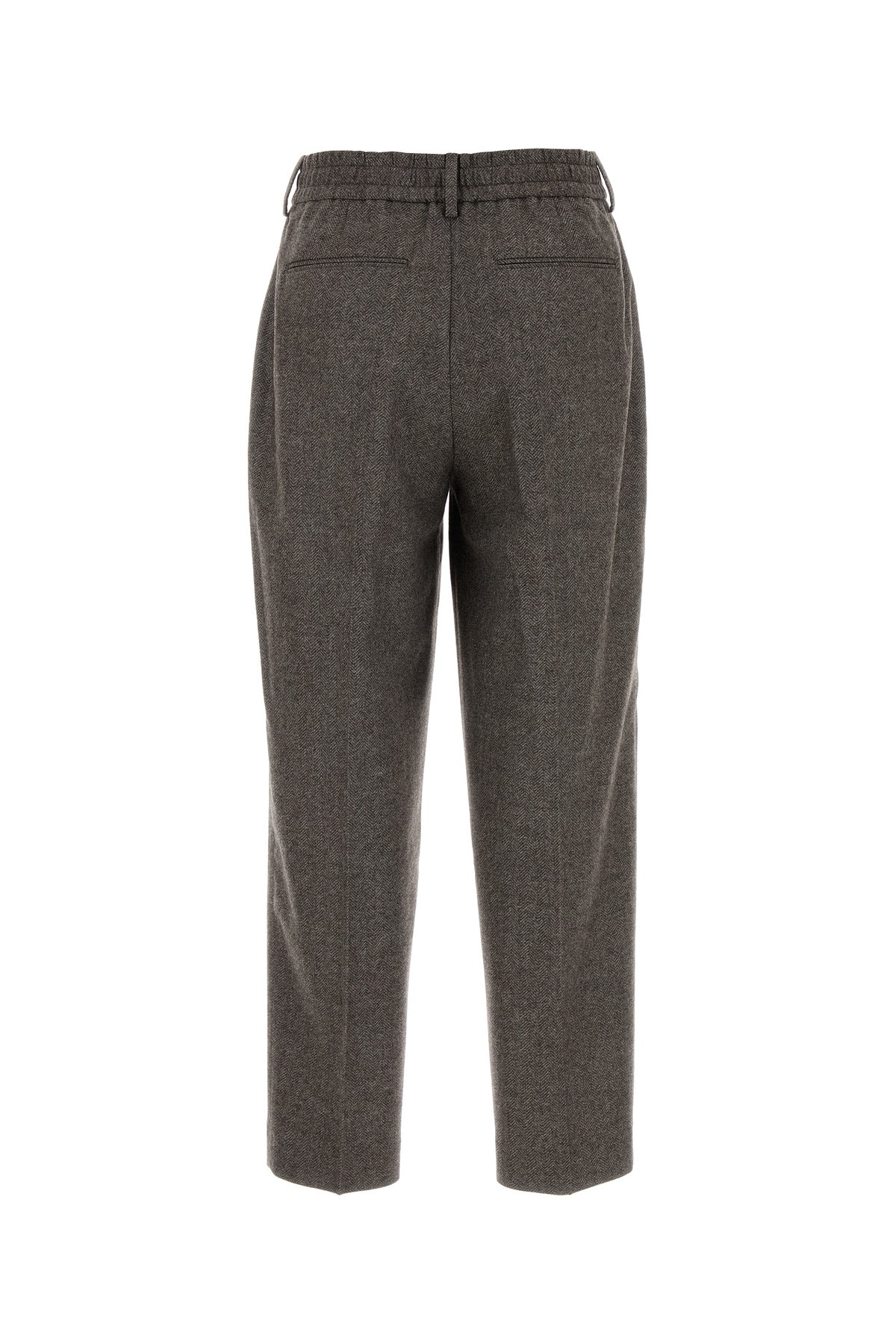 Pant realized in stretch wool blend characterized by chevron motif embroidery on the entire surface.