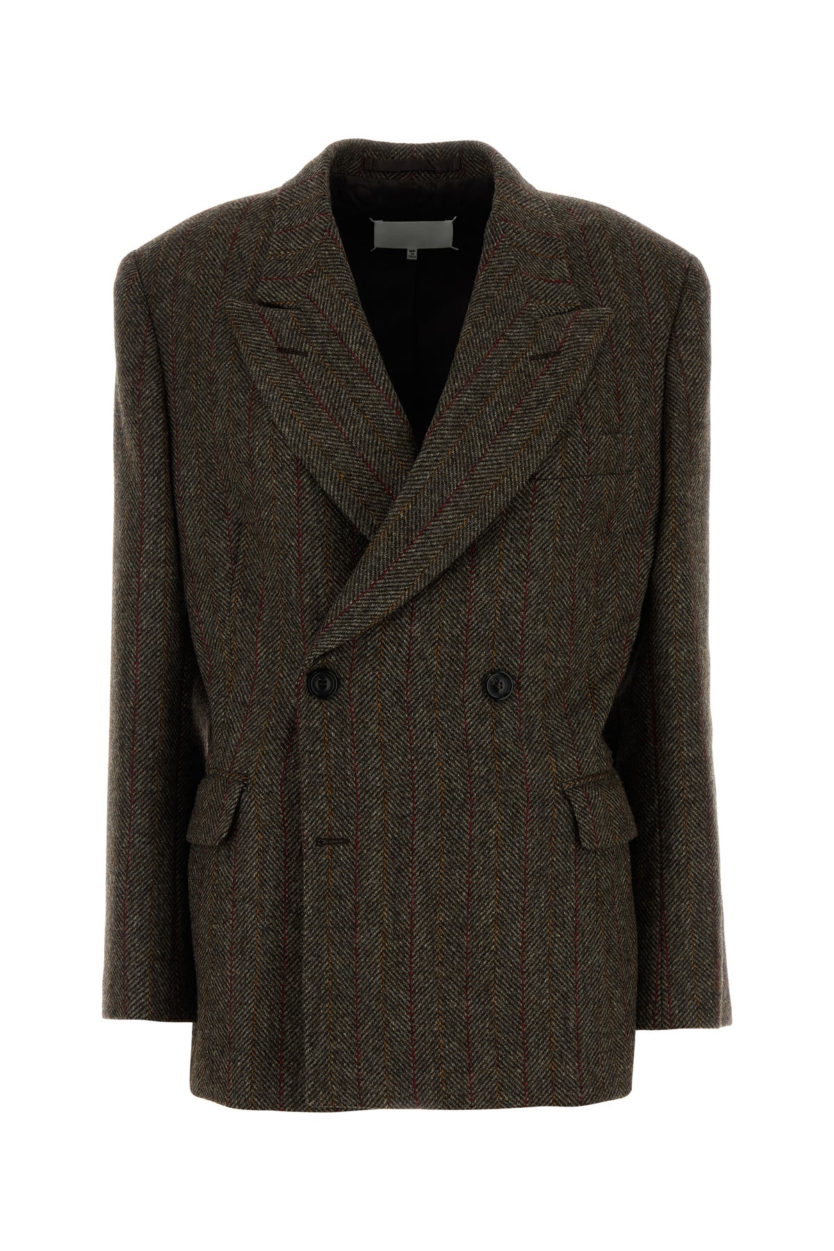 Blazer realized in pure wool characterized by striped embroidery on the entire surface.