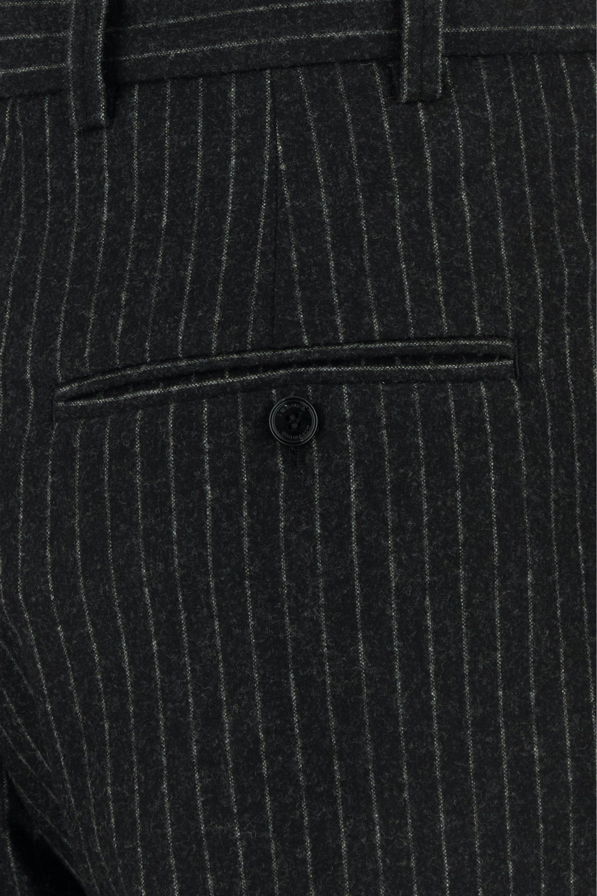 Pant realized in wool blend characterized by pin-striped embroidery on the entire surface.