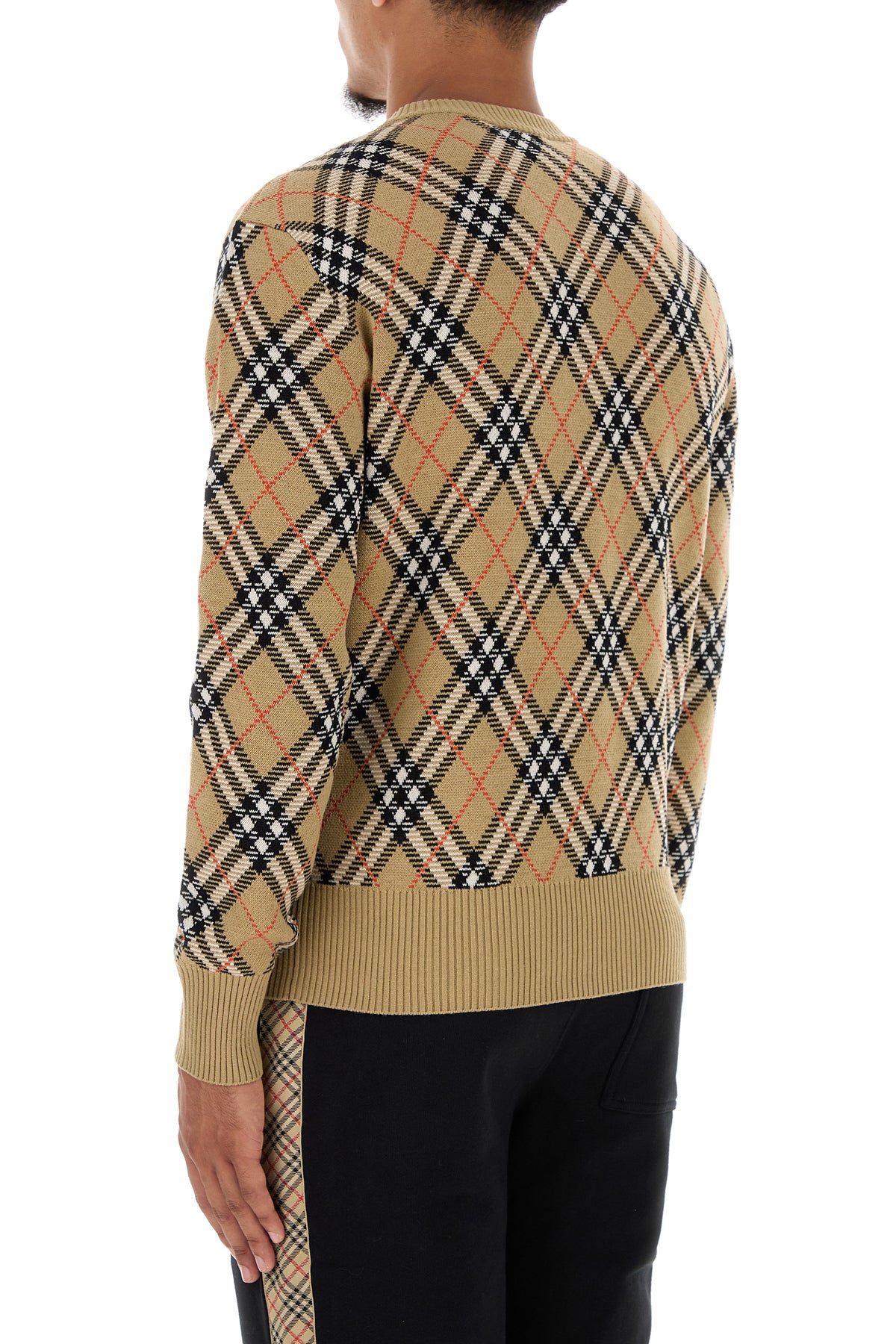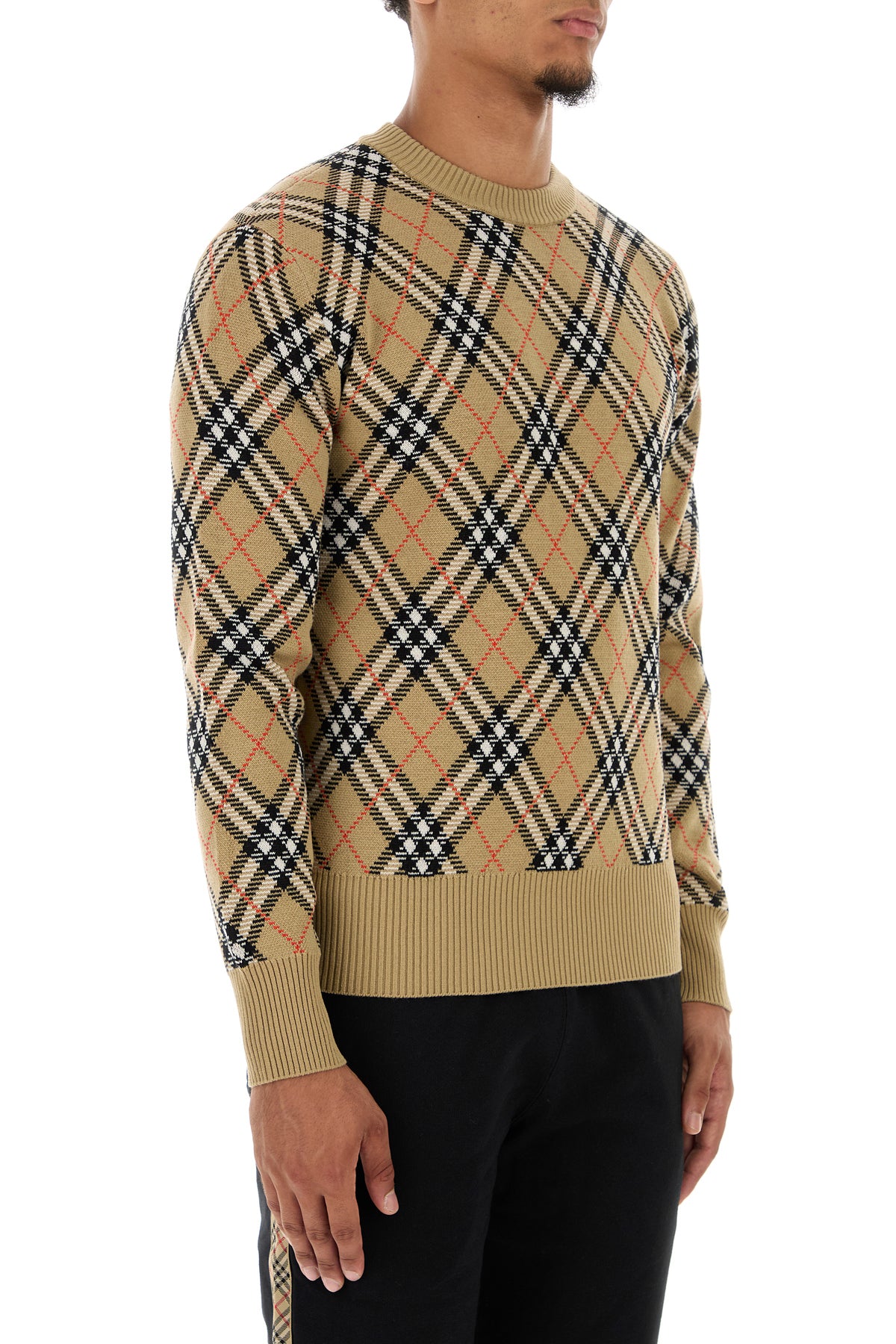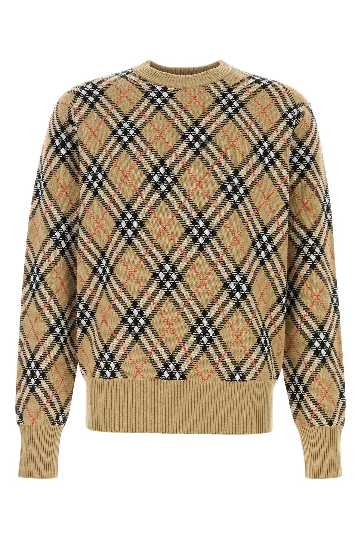 Sweater realized in wool blend characterized by Burberry Check embroidery on the entire surface.