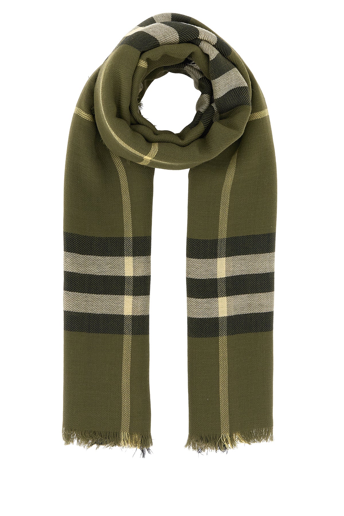 Scarf realized in pure wool characterized by Burberry Check embroidery on the entire surface.