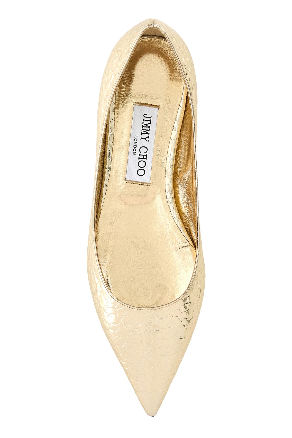 Ballerinas realized in laminated craquelé-effect synthetic leather.