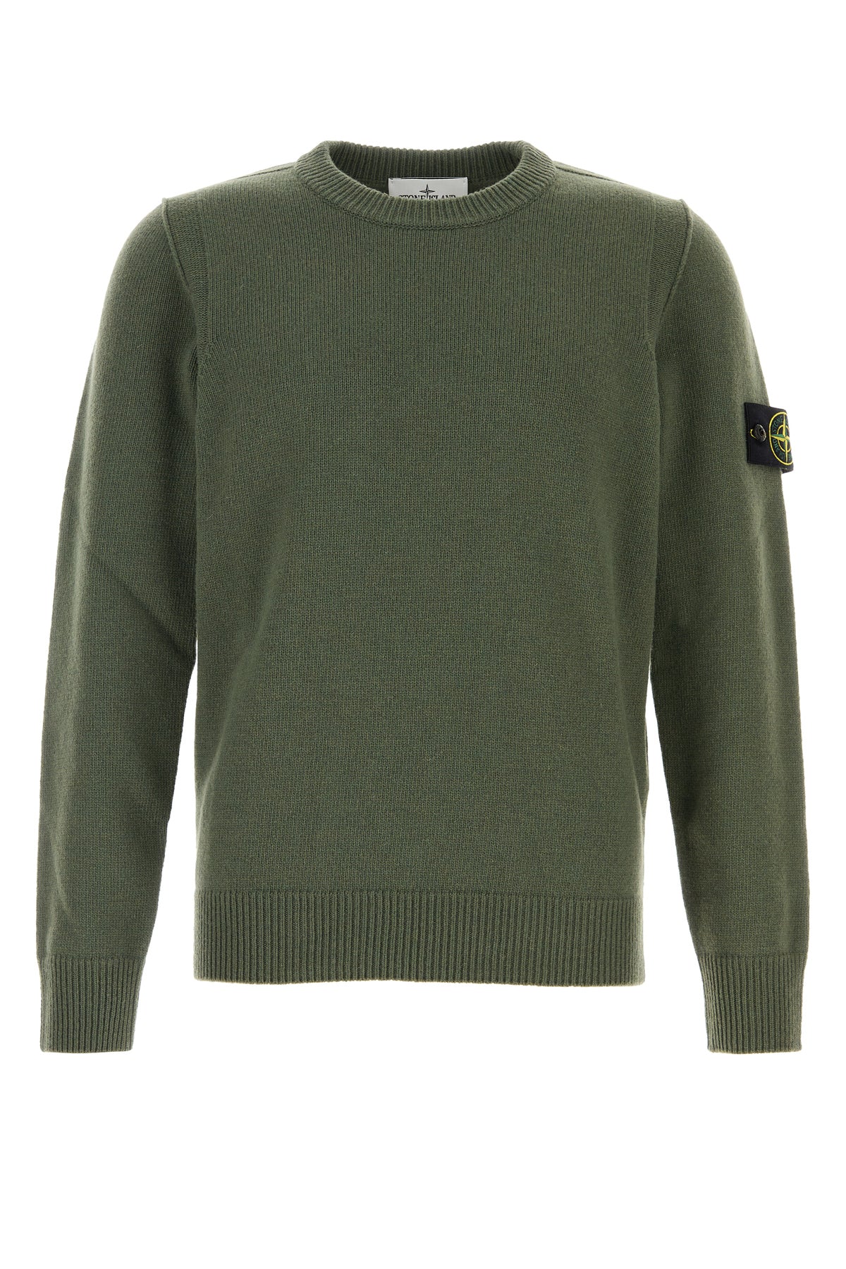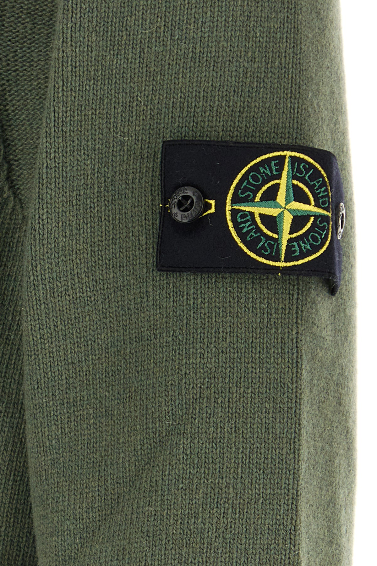 Sweater realized in virgin wool enriched by detachable logoed label on the sleeve.