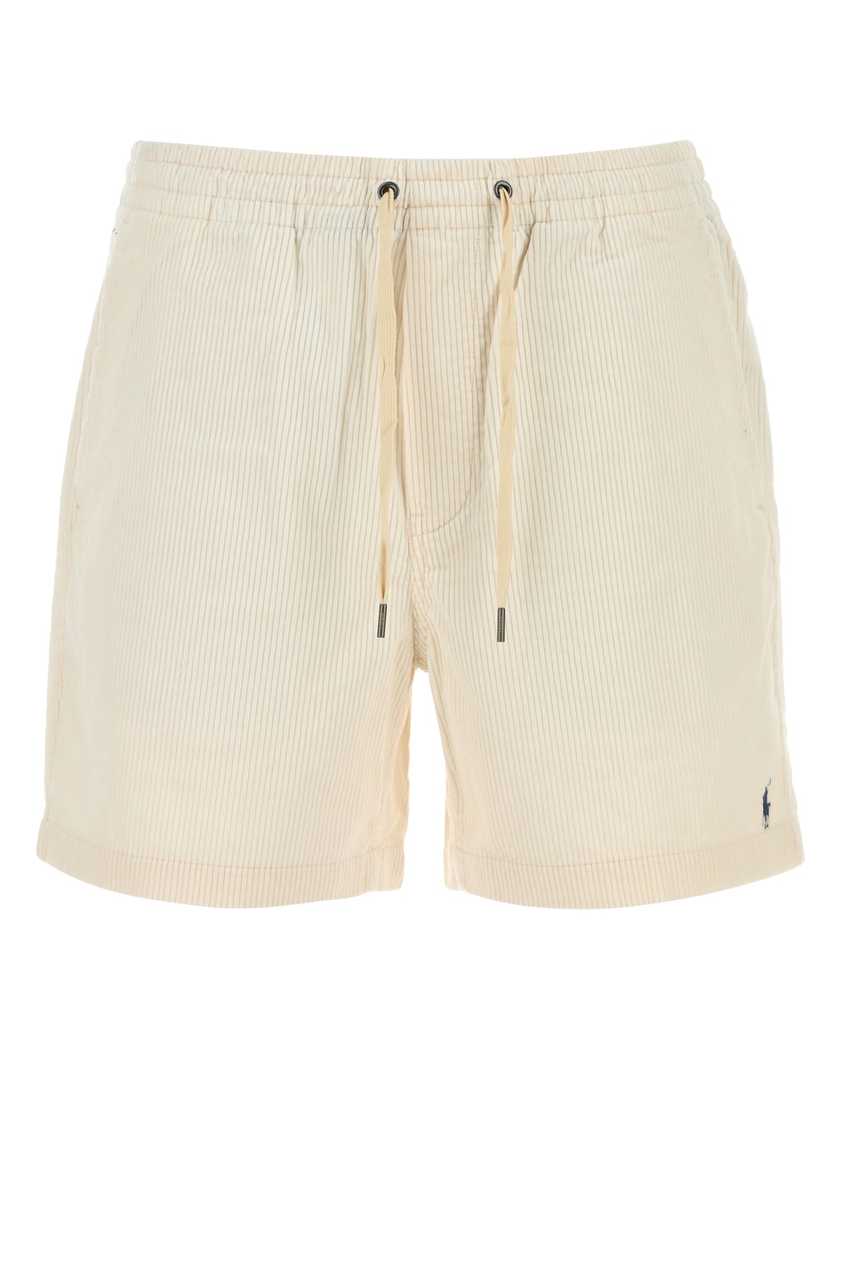 Bermuda shorts realized in pure cotton corduroy characterized by iconic contrasting embroidered logo on the hemline.