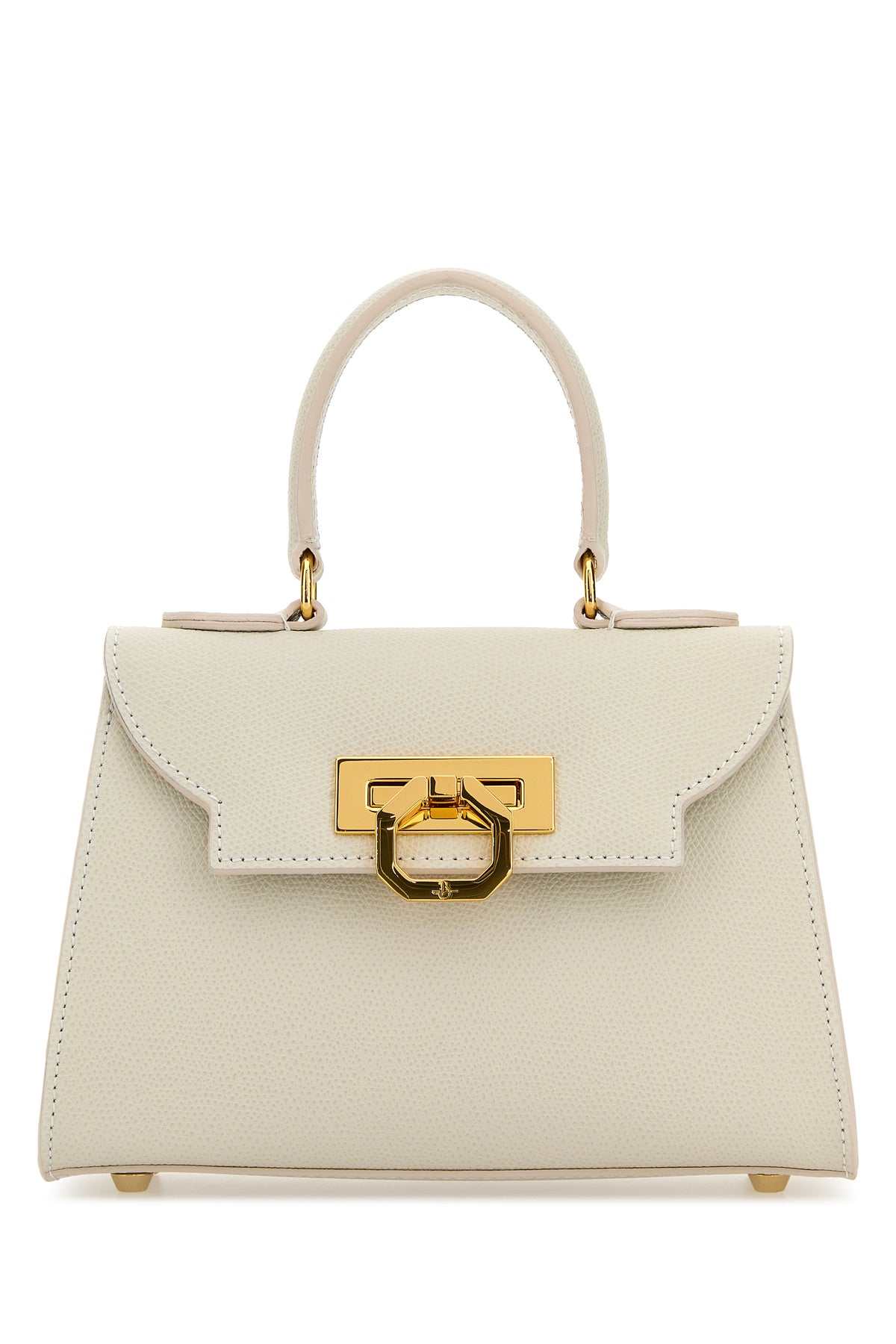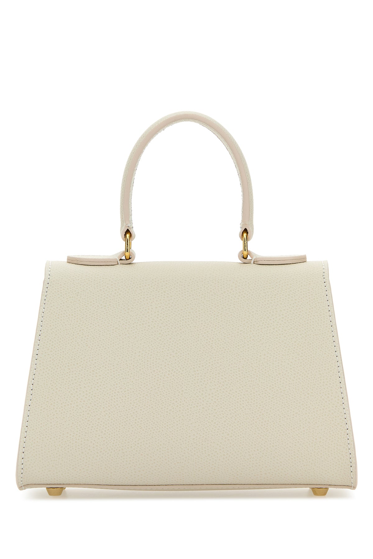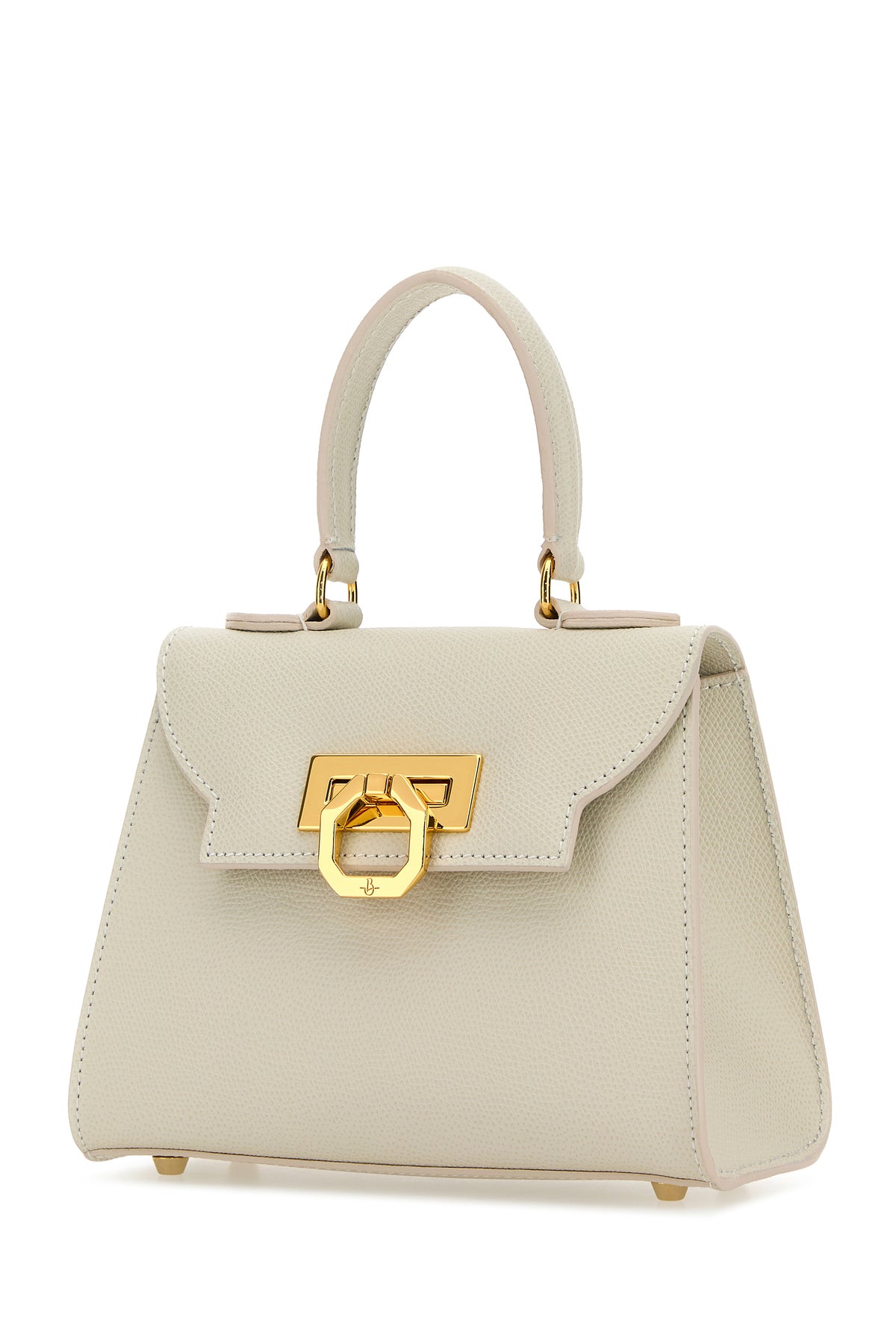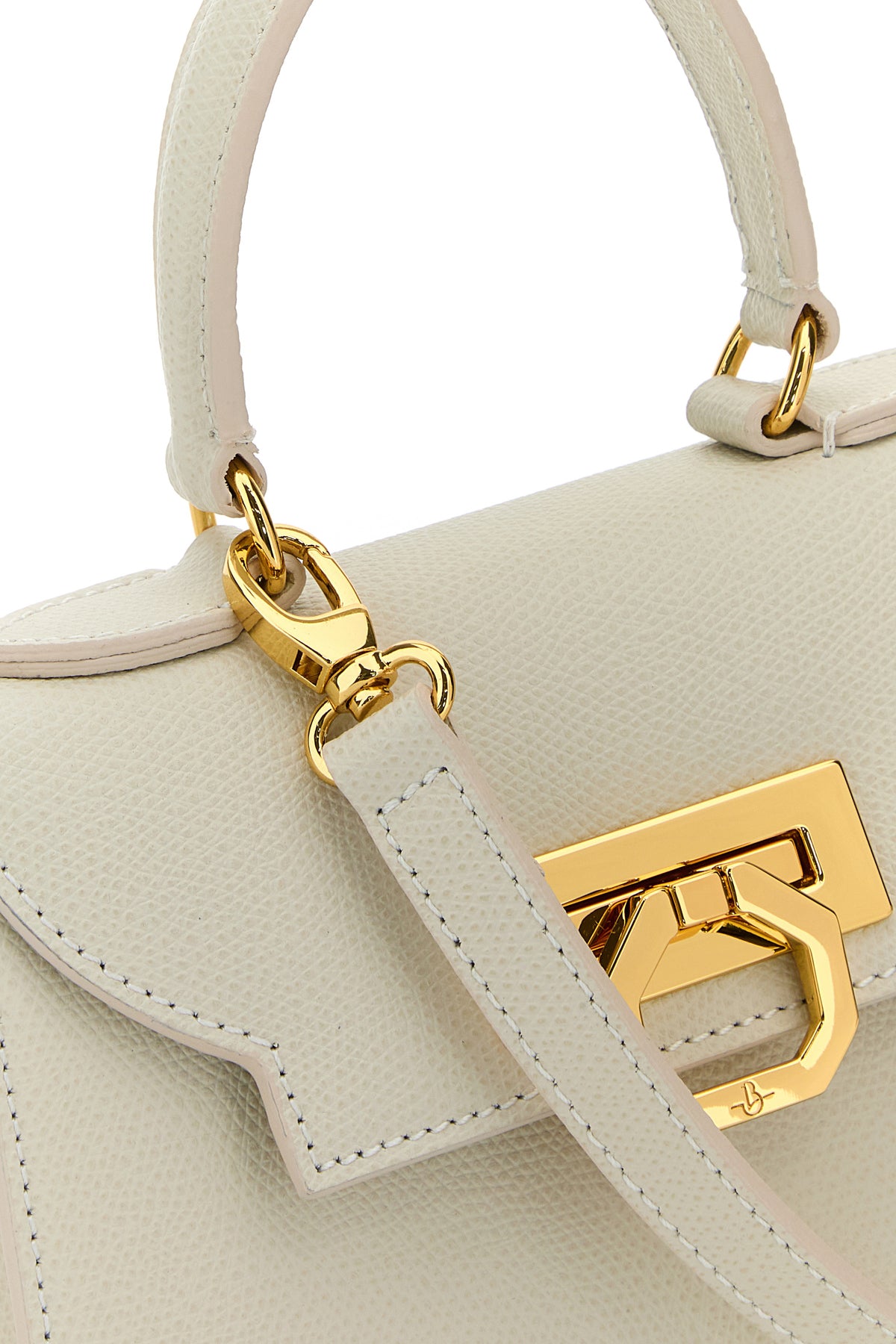 Handbag realized in grained calf leather characterized by snap-fit closure.
