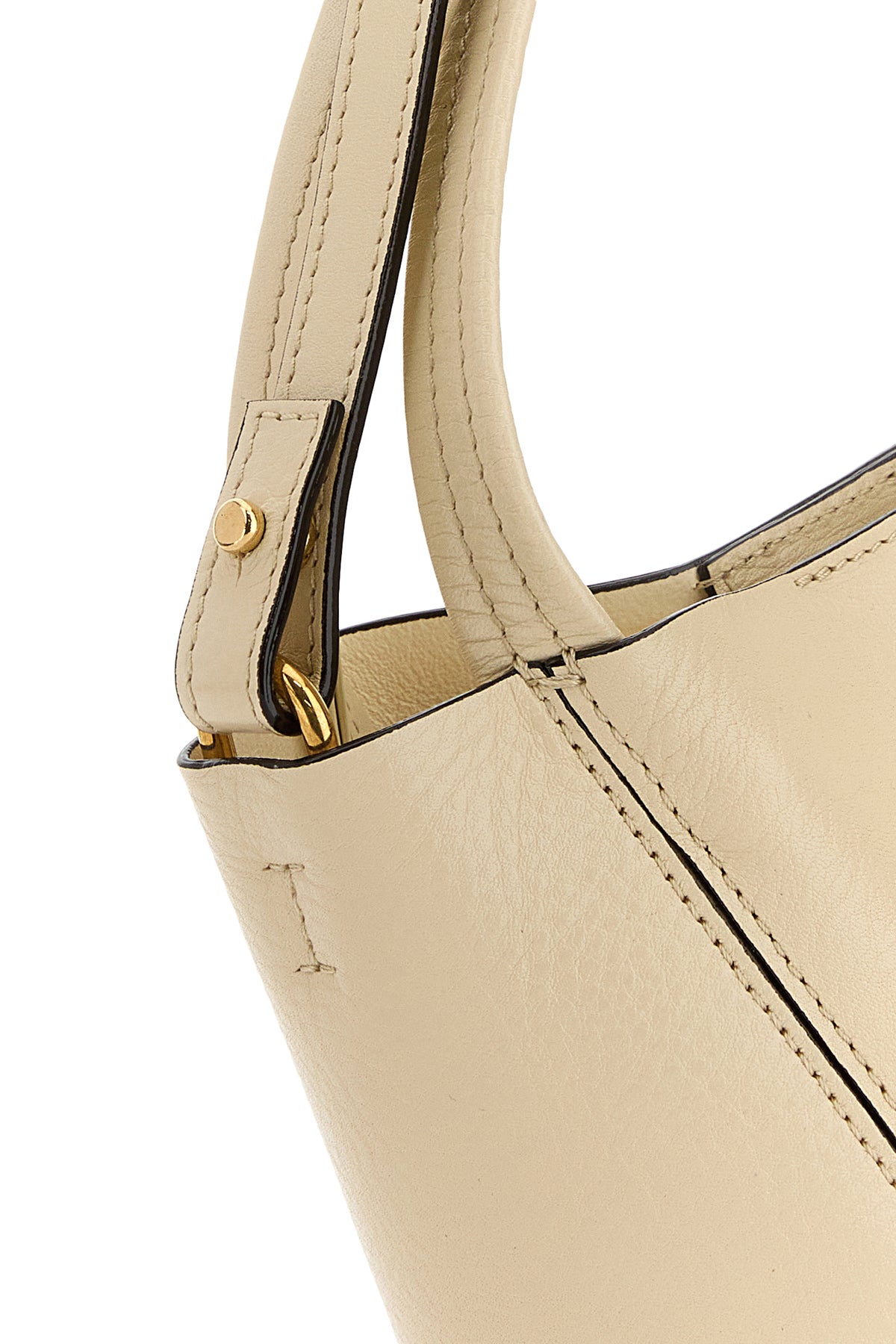 Shopping bag realized in pebble calf leather characterized by laminated printed logo at the front enriched by detachable metal accessory with logoed charms.