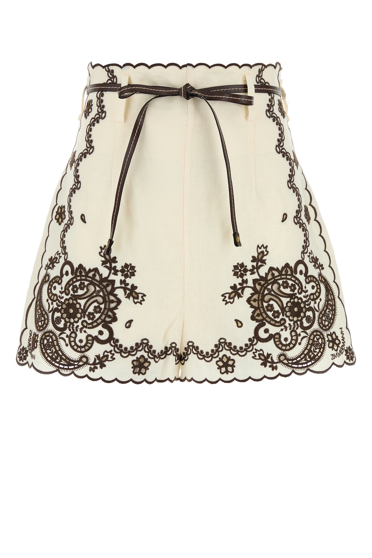 Shorts realized in pure linen characterized by peculiar embroidery on the entire surface.