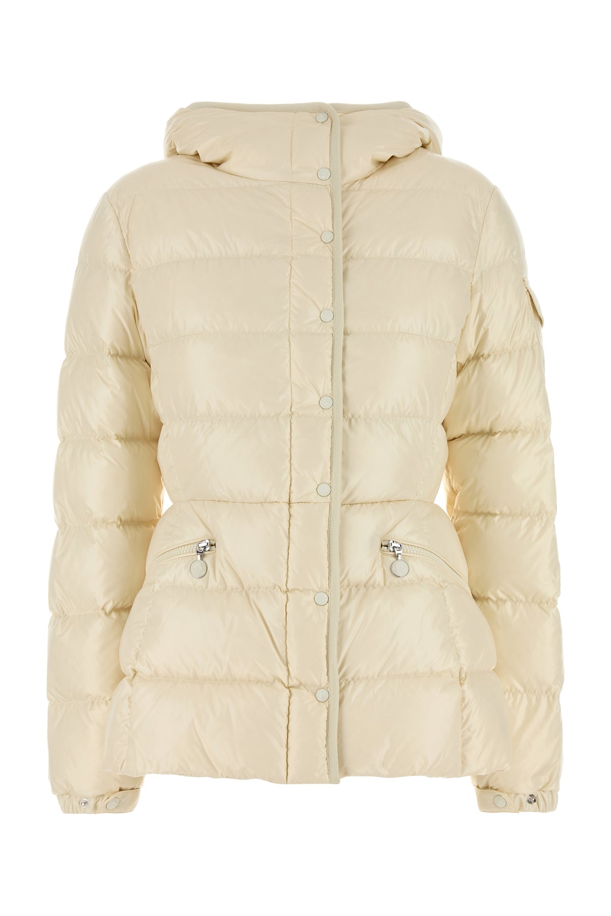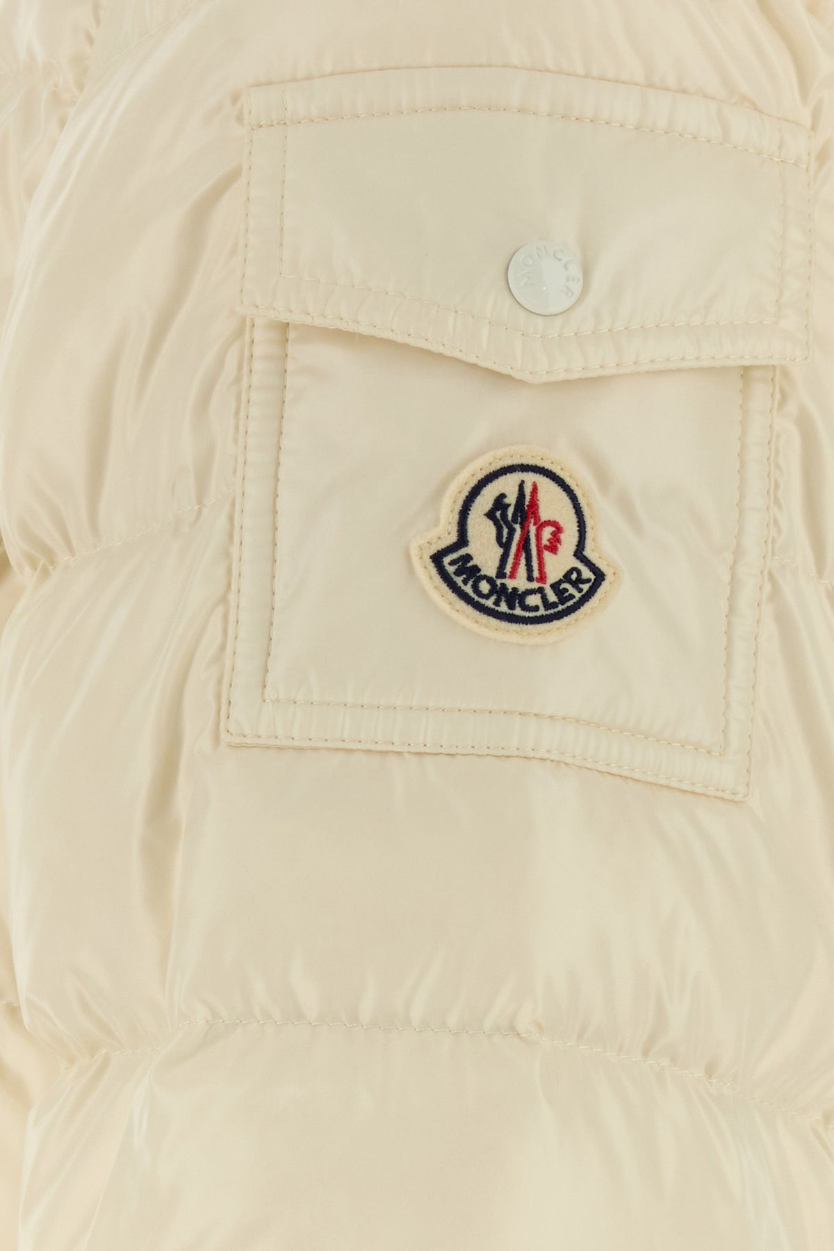 Down jacket realized in quilted nylon enriched by contrasting logoed patch on the sleeve.