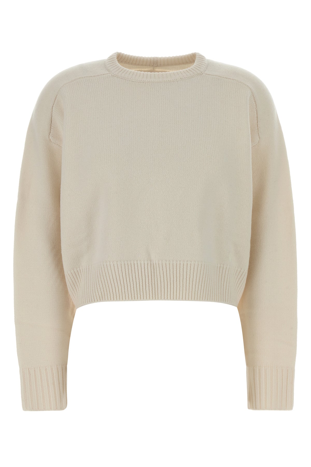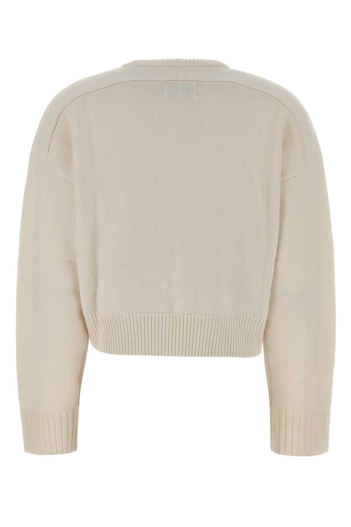 Sweater realized in wool and cashmere characterized by tonal embroidered logo on the hemline.