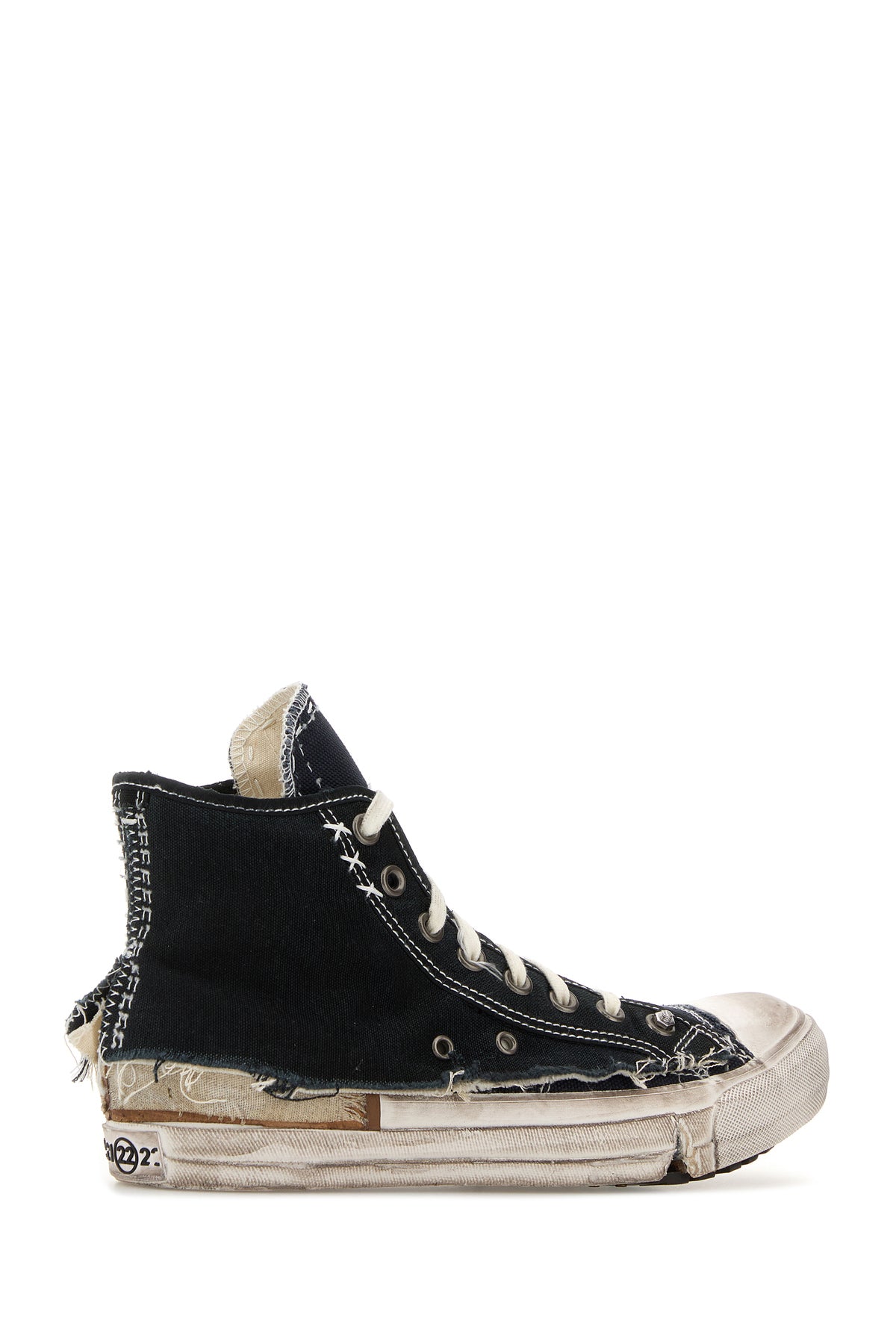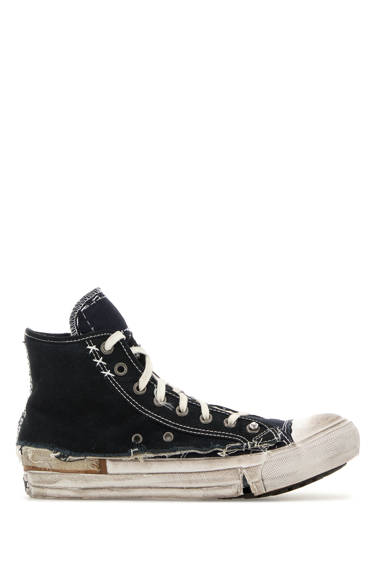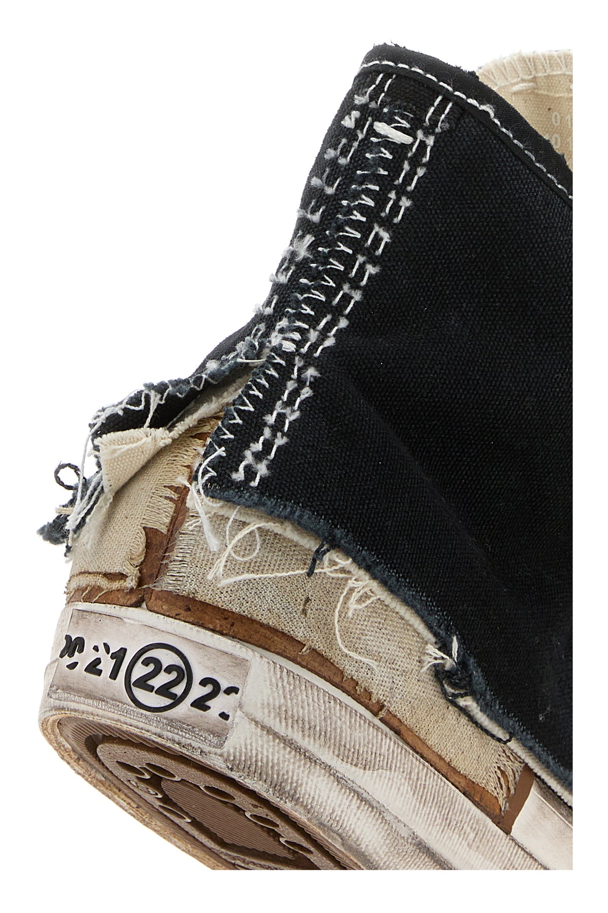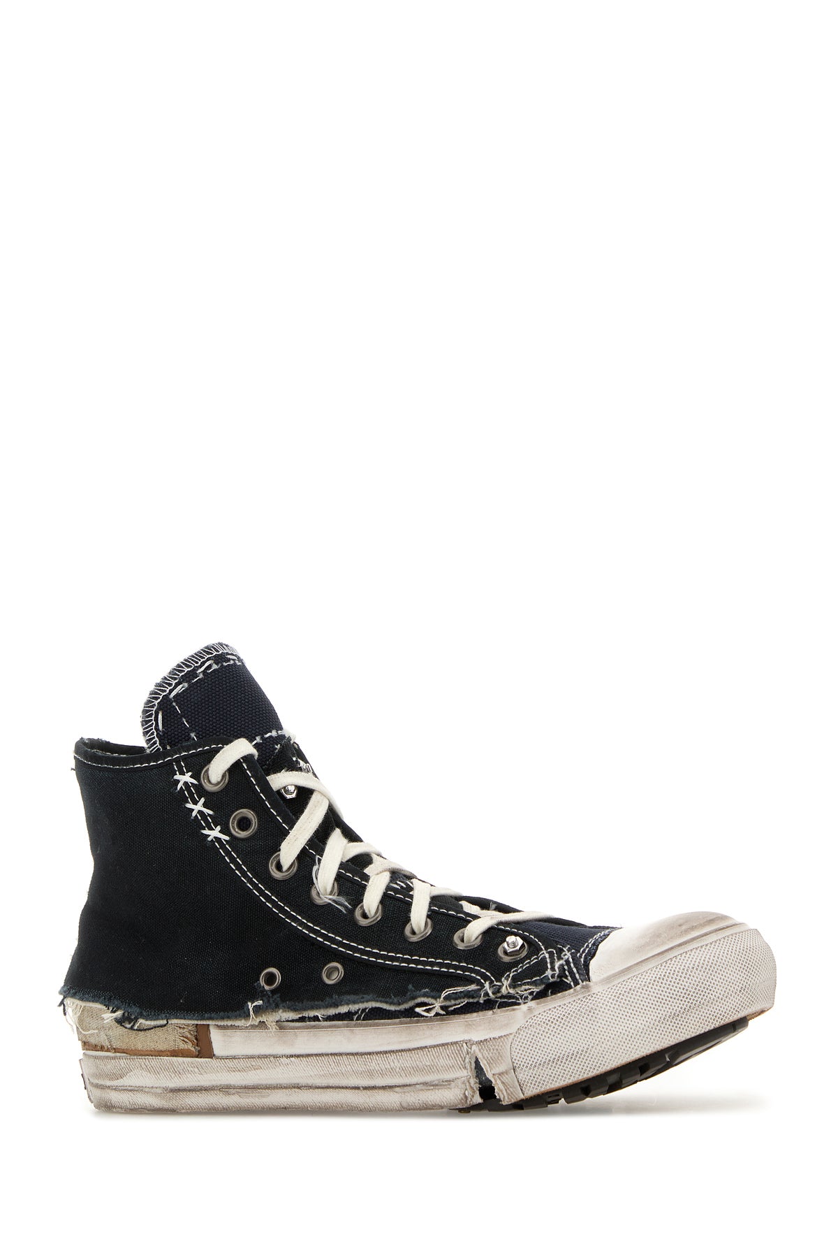 High-top sneakers realized in distressed effect canvas enriched by logoed patch at the back.