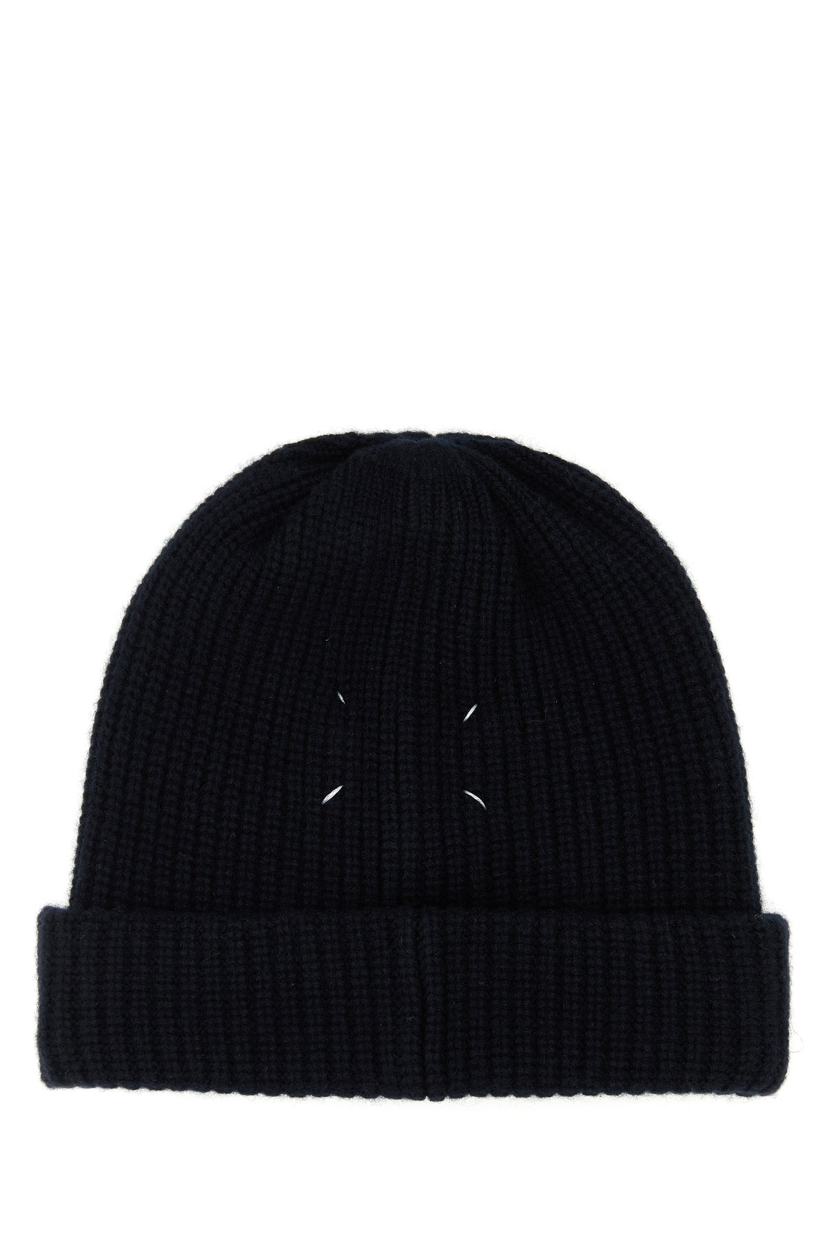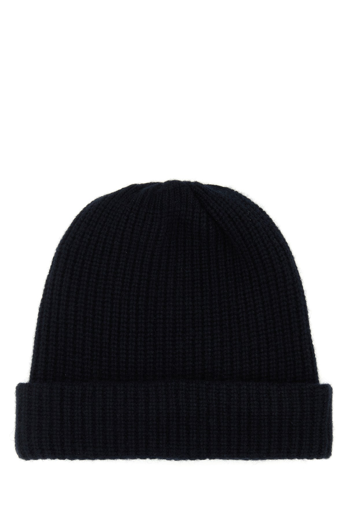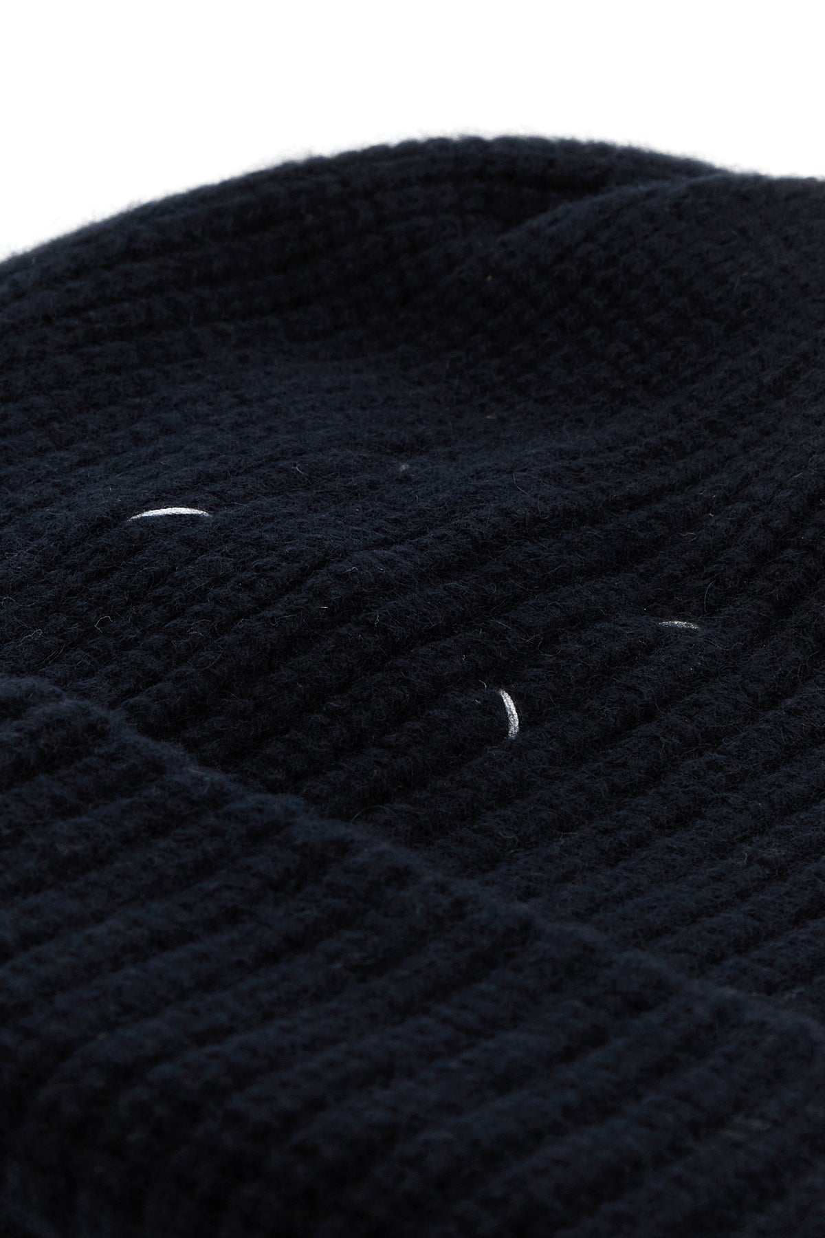 Beanie hat realized in ribbed pure cashmere characterized by contrasting iconic stitchings at the back.