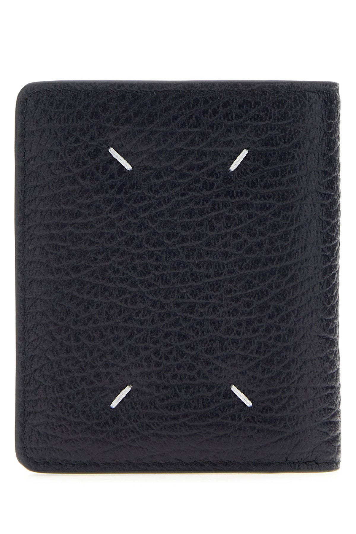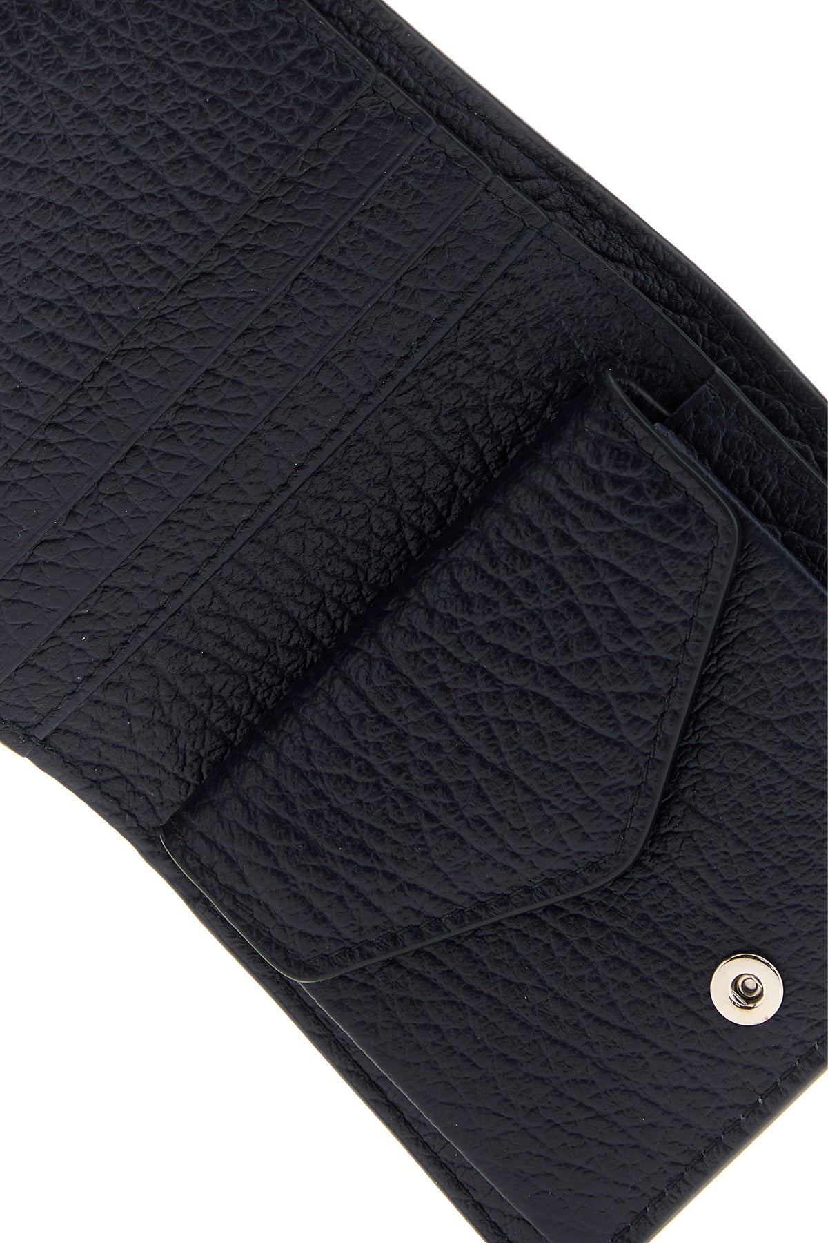 Wallet realized in pebble leather characterized by contrasting stitchings at the front.