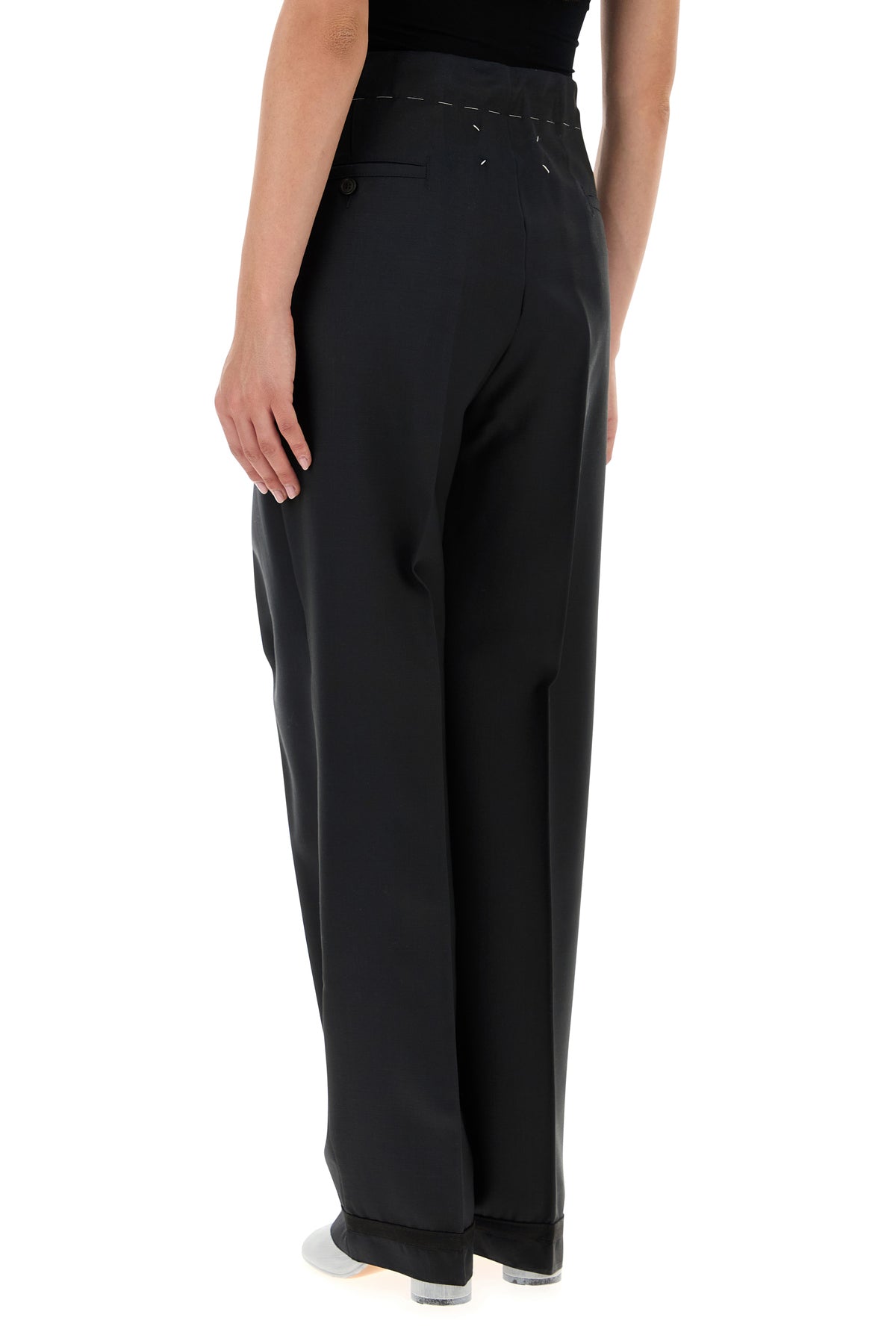 Pant realized in mohair and wool characterized by iconic contrasting stitching at the back.