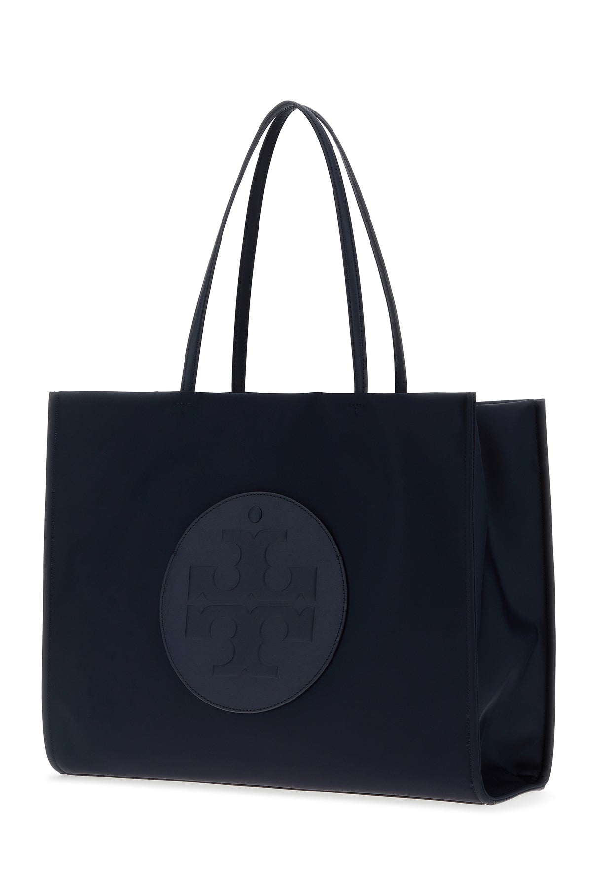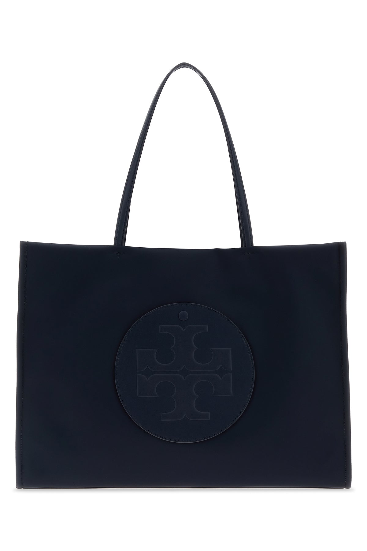 Shopping bag realized in recycled nylon enriched by tonal logoed patch at the front.