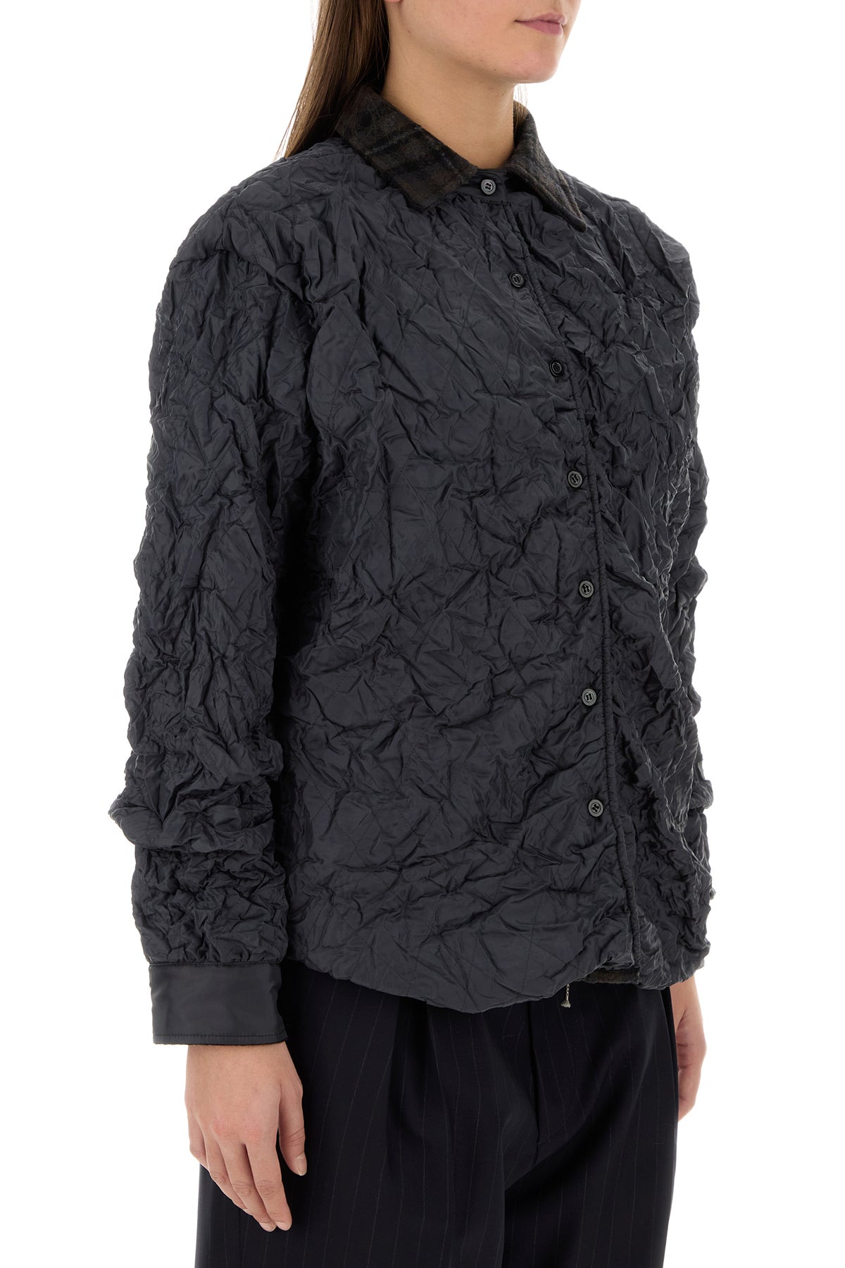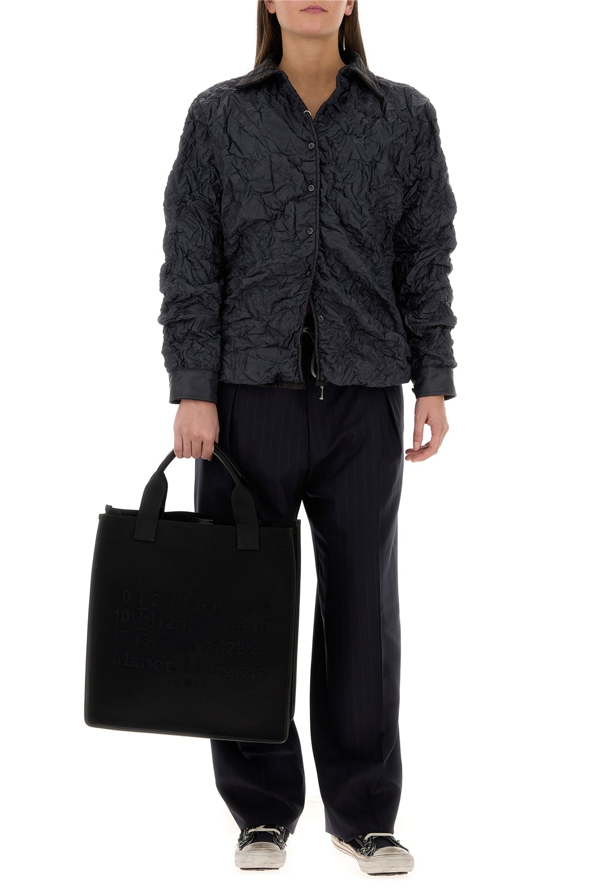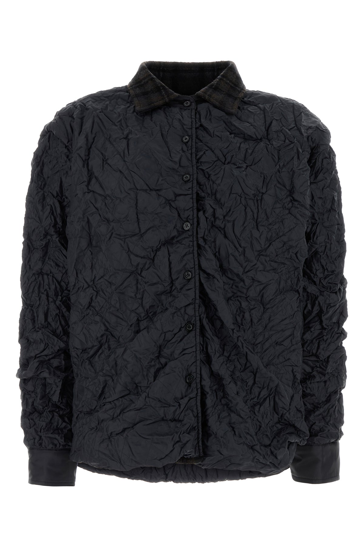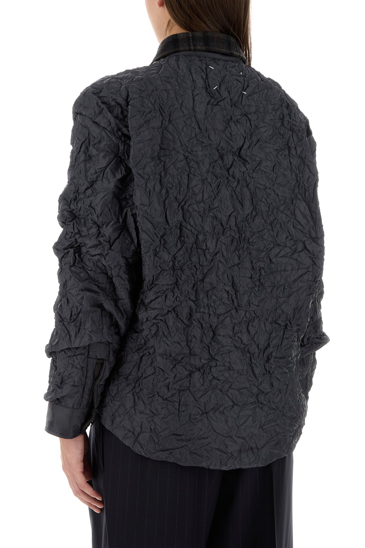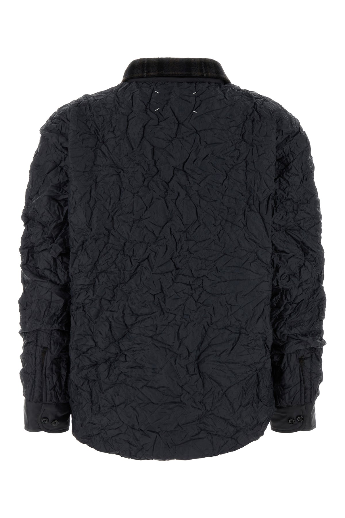Reversible jacket realized in polyester characterized by iconic contrasting stitching at the back.