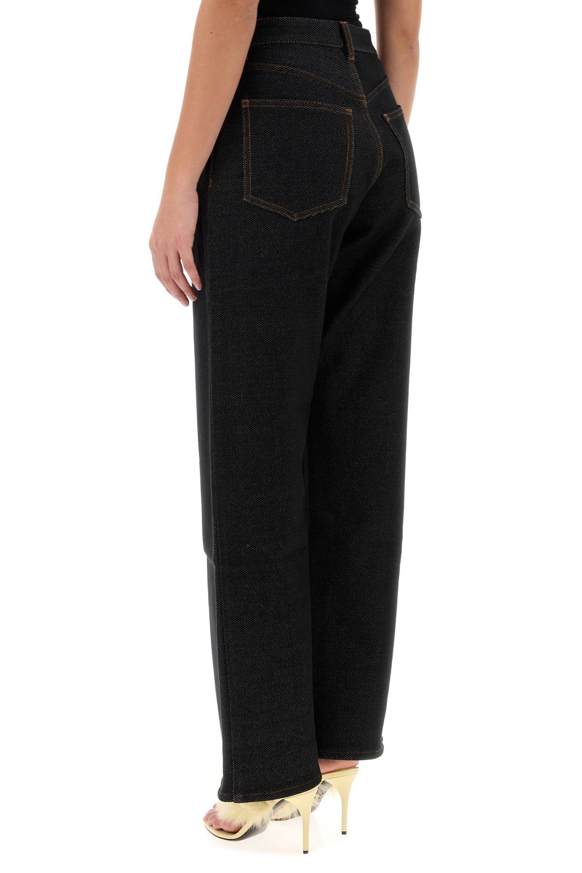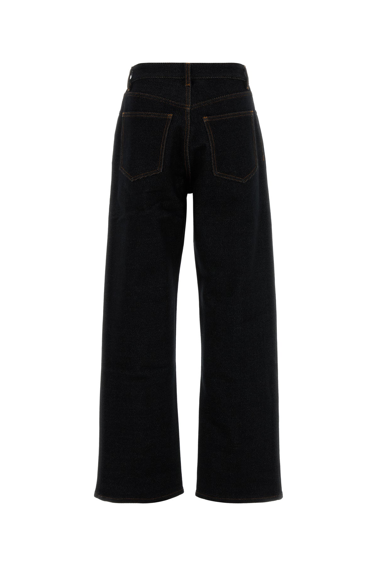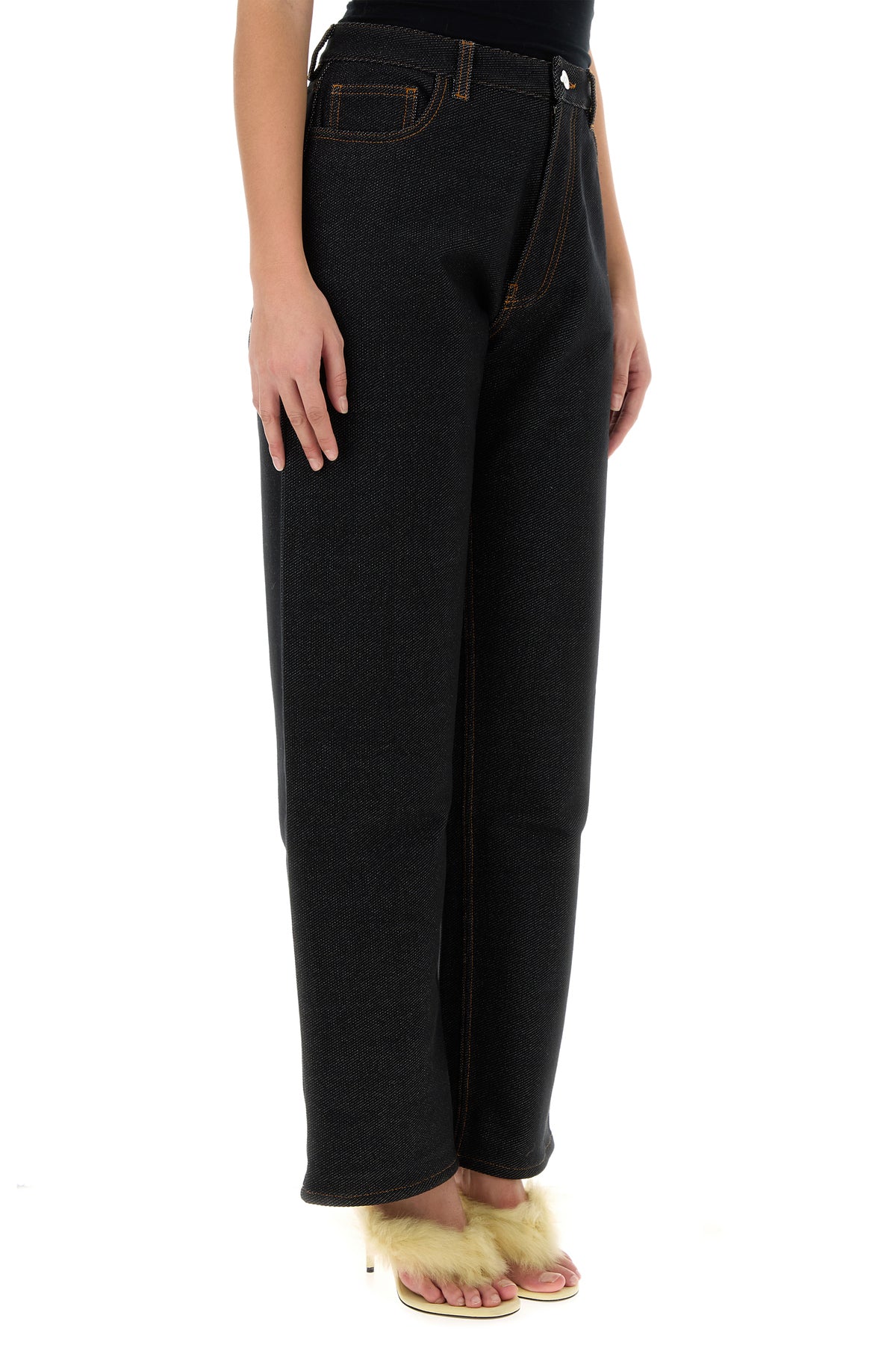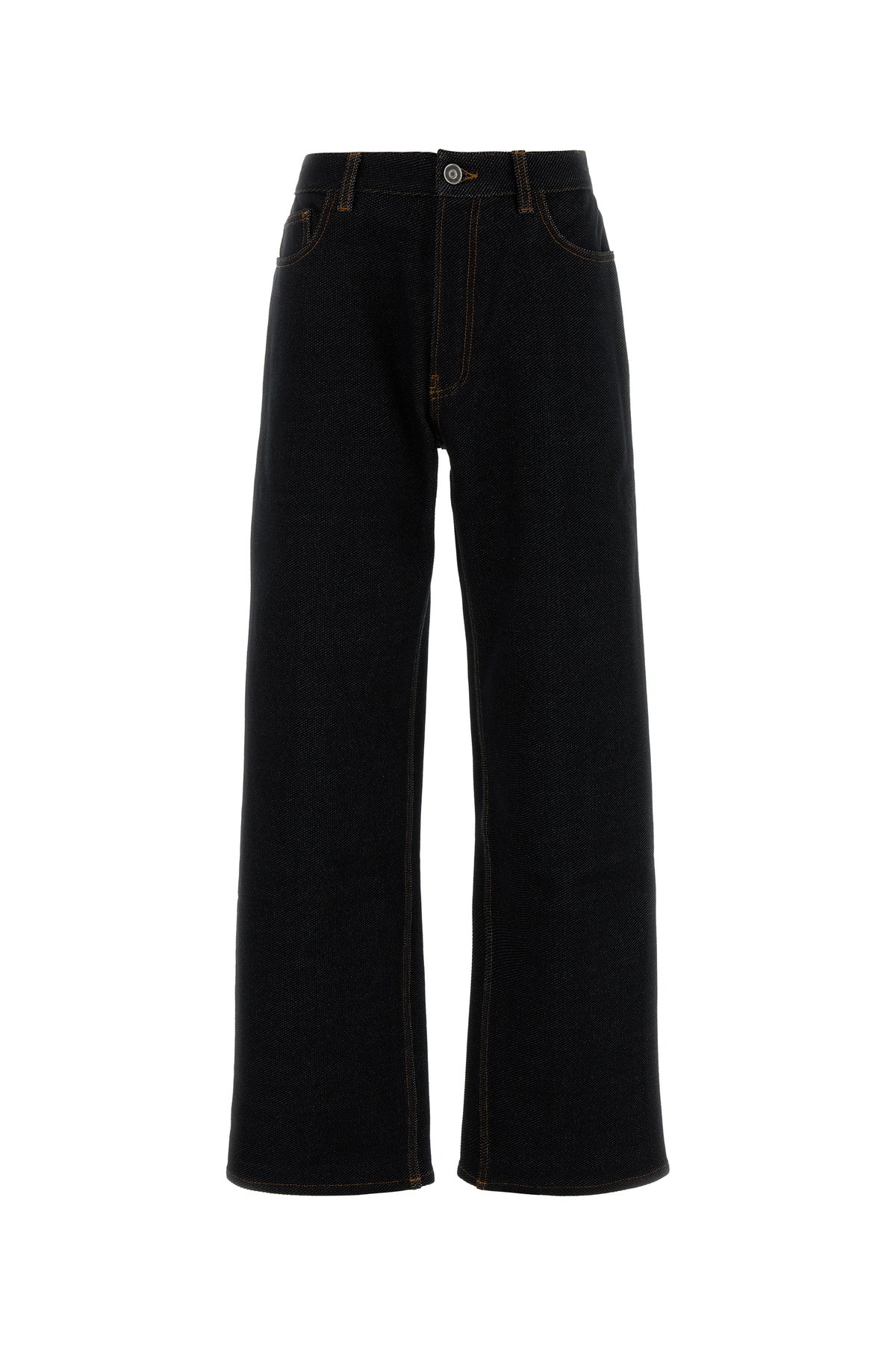 Jeans realized in stretch denim characterized by contrasting stitching.