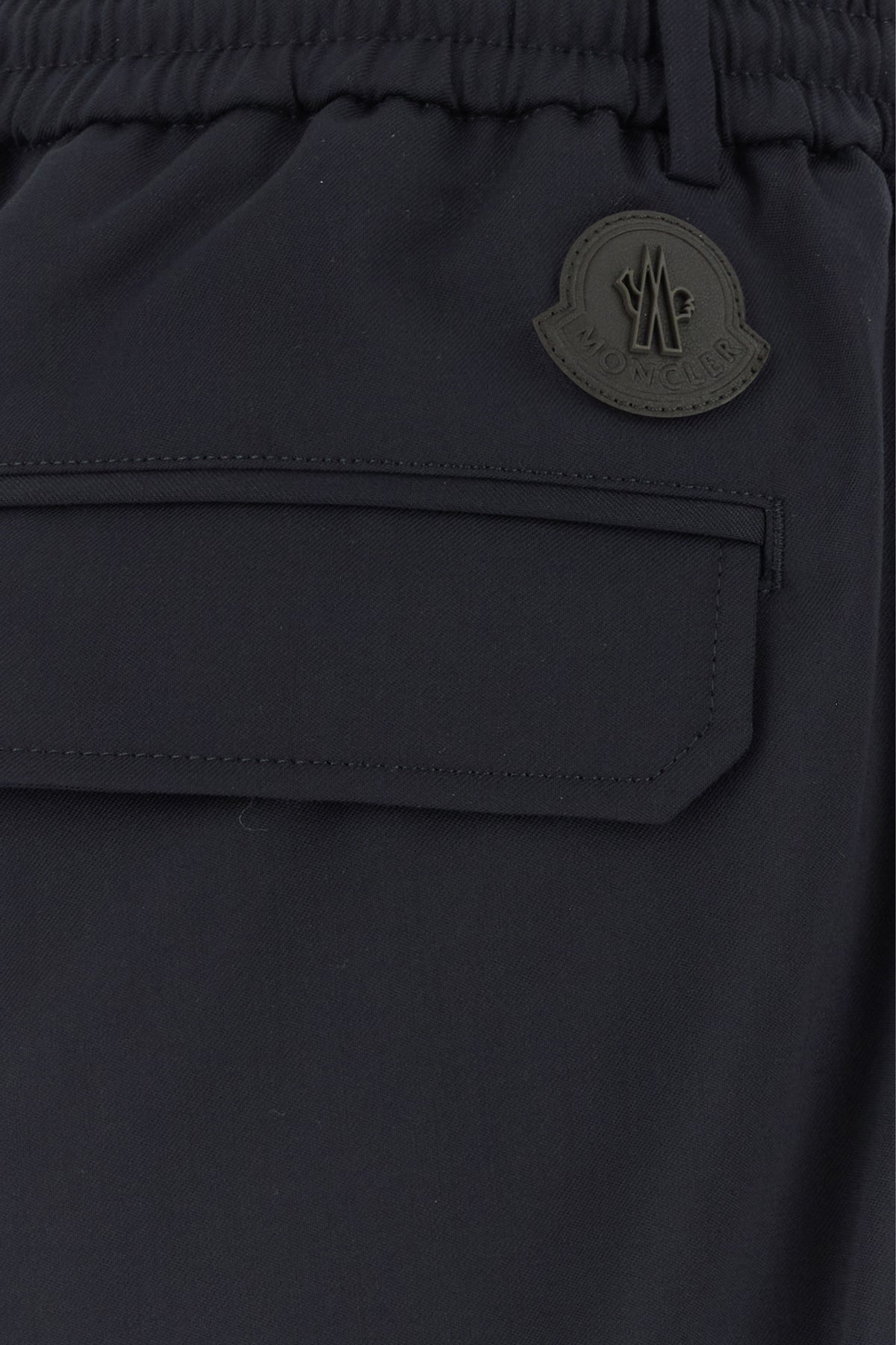 Pant realized in stretch virgin wool blend enriched by contrasting logoed patch at the back.