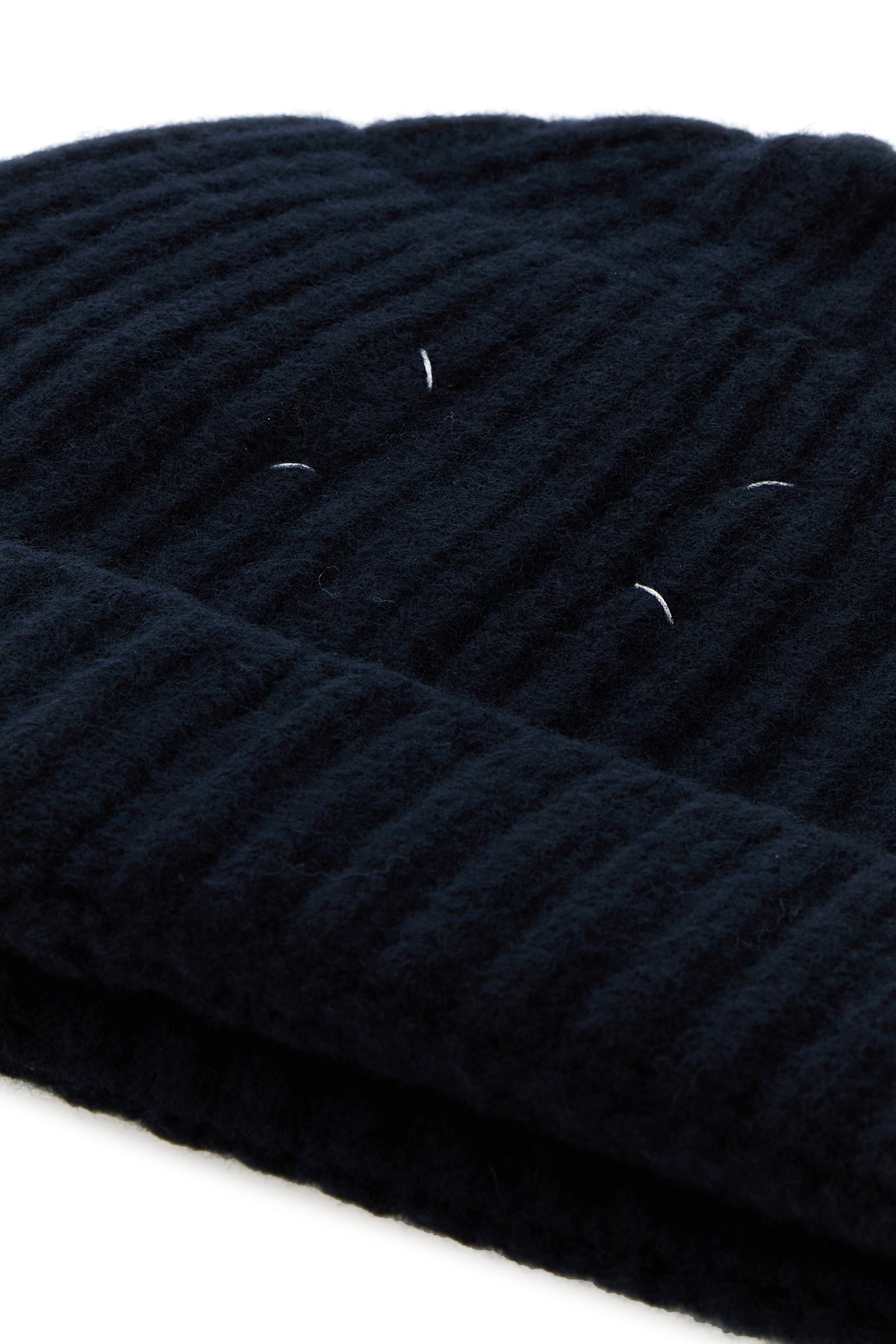 Beanie hat realized in pure virgin wool characterized by iconic contrasting stitching at the back.
