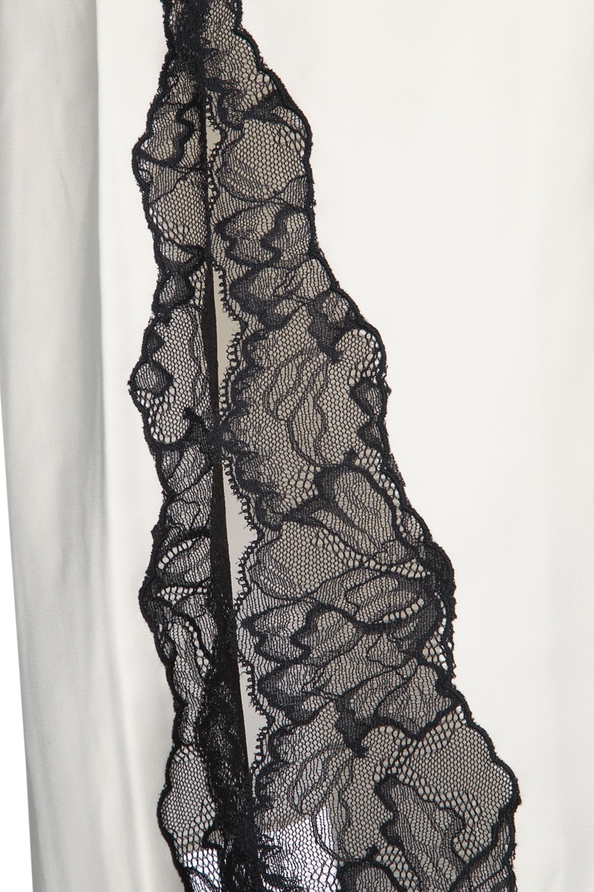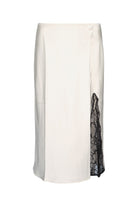 Midi-length skirt realized in satin enriched by lace insert on the hemline.