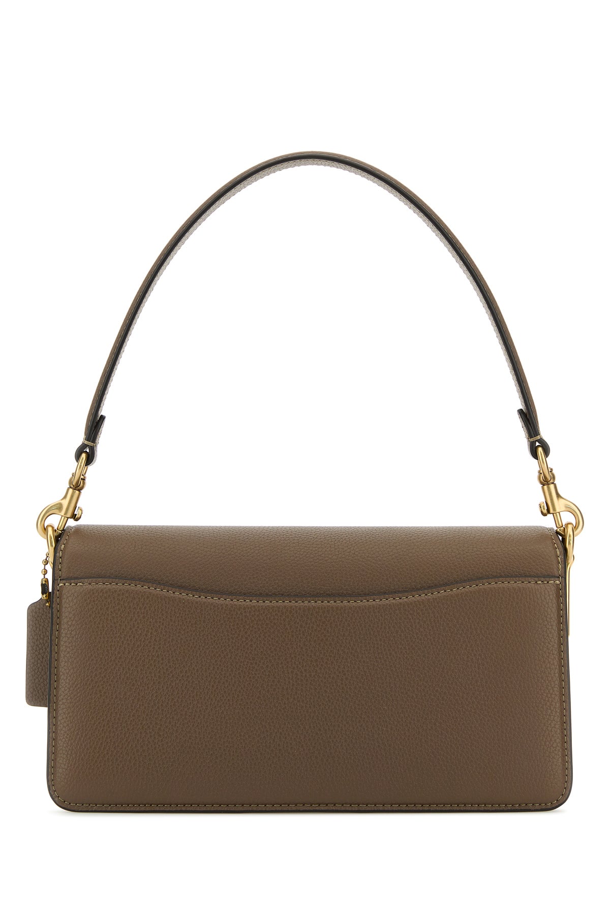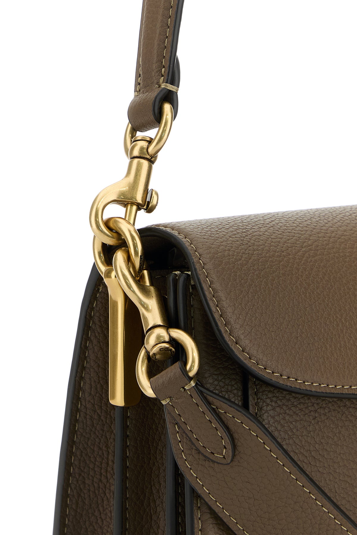 Handbag realized in pebble leather enriched by logoed metal detail at the front.