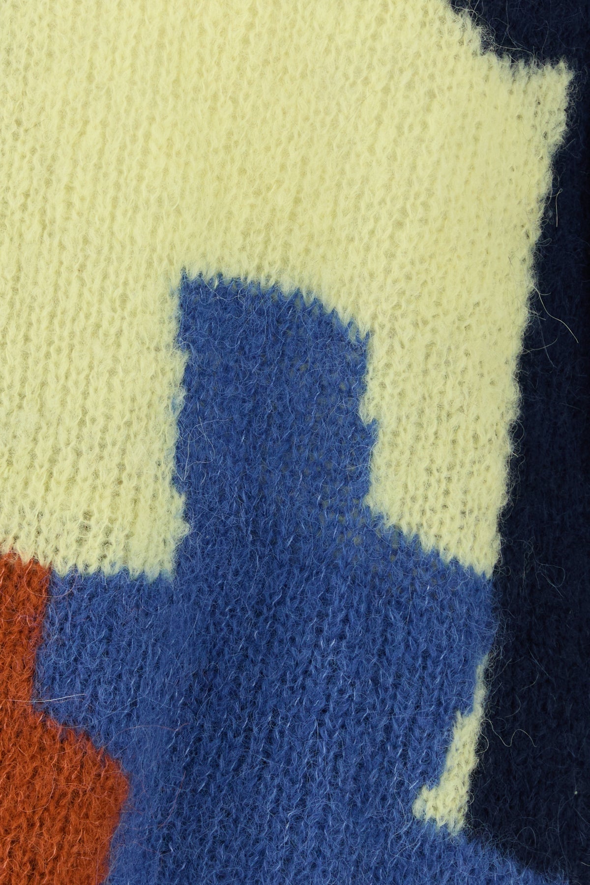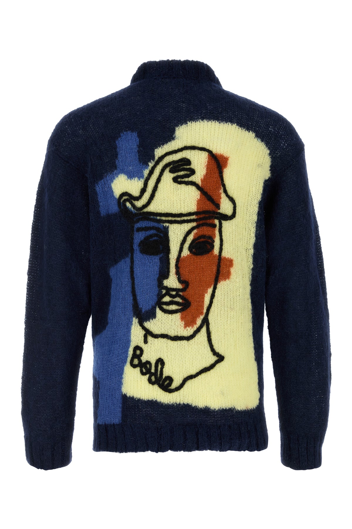 Cardigan realized in alpaca blend characterized by peculiar embroidery at the back.