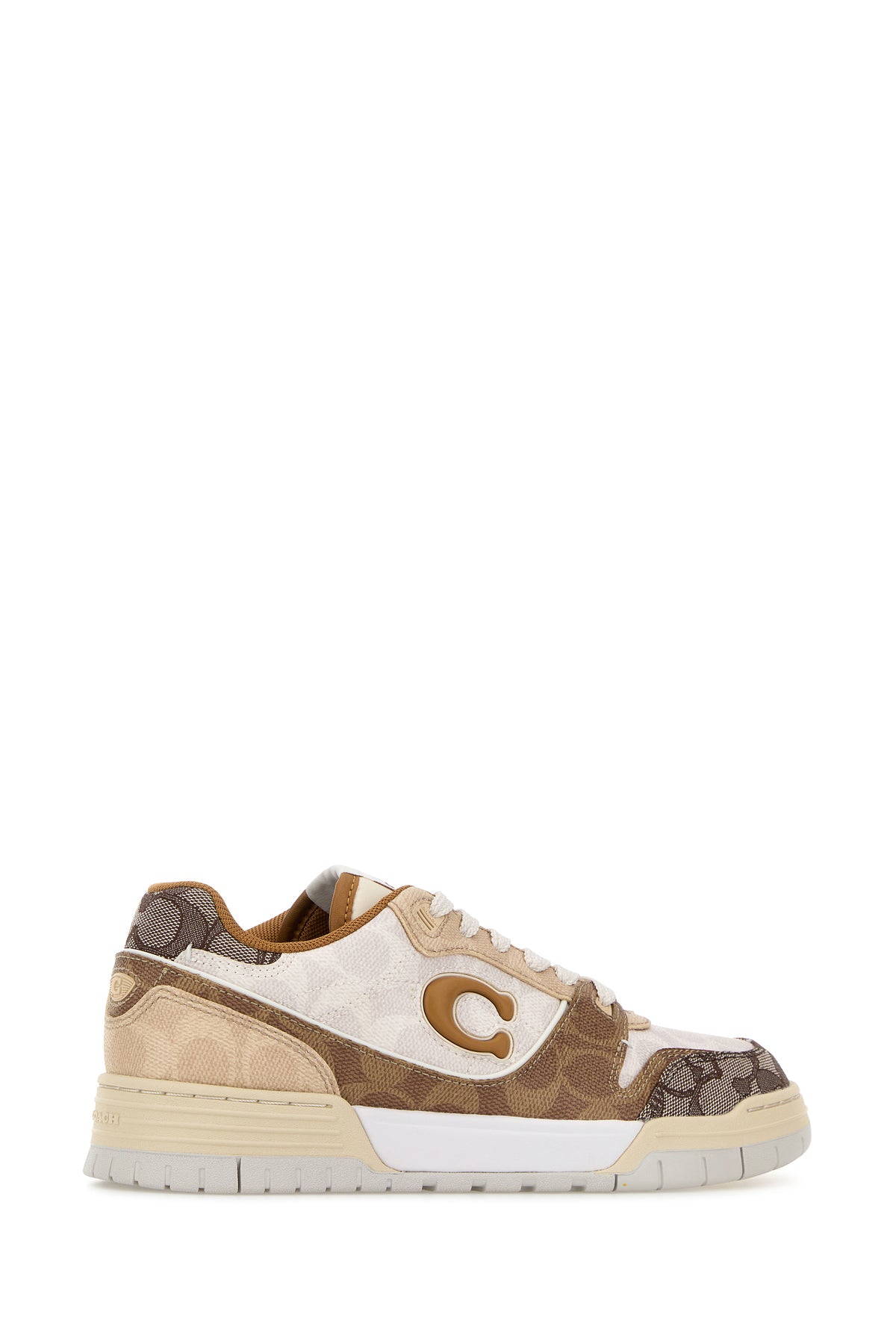 Sneakers realized in coated canvas characterized by printed logo on the entire surface enriched by logoed patch on the side.