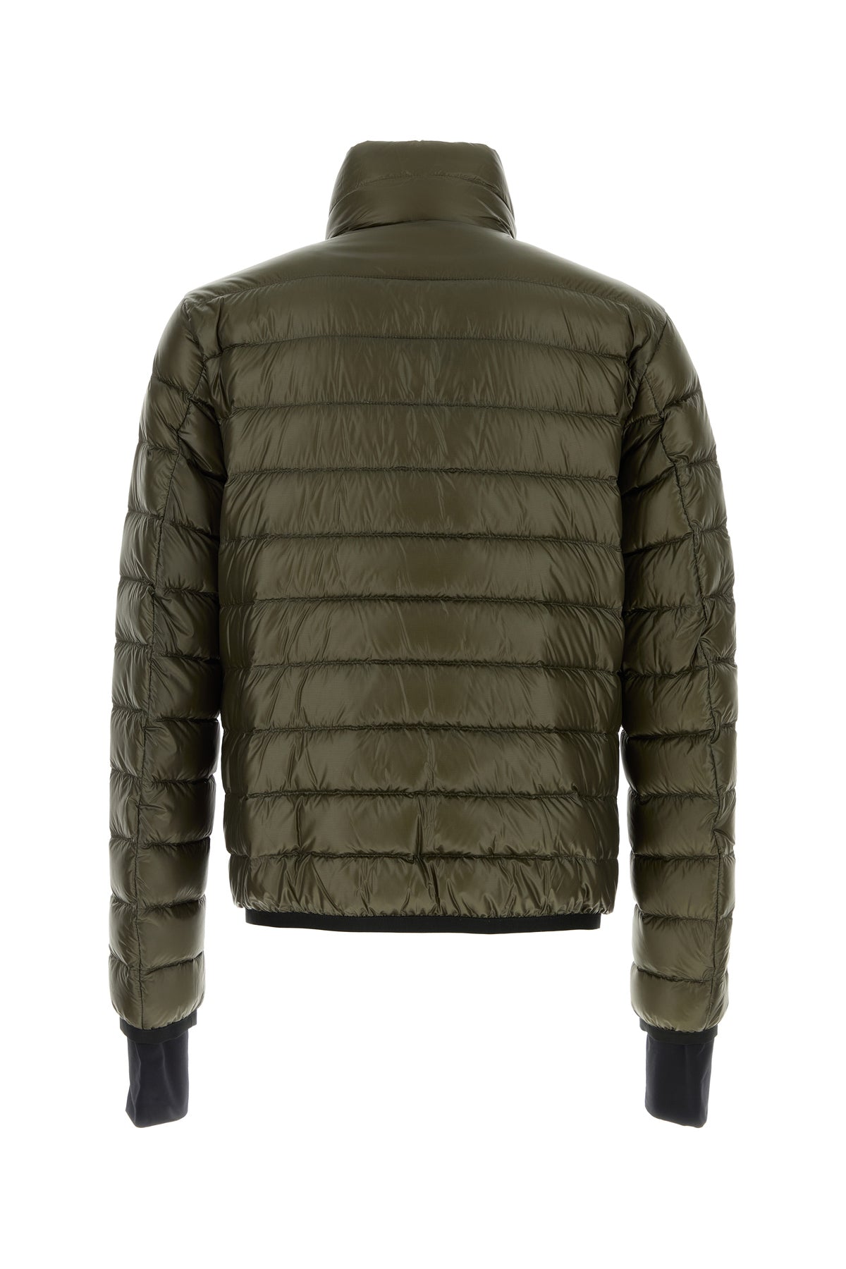 Down jacket realized in quilted nylon enriched by logoed patch on the sleeve.