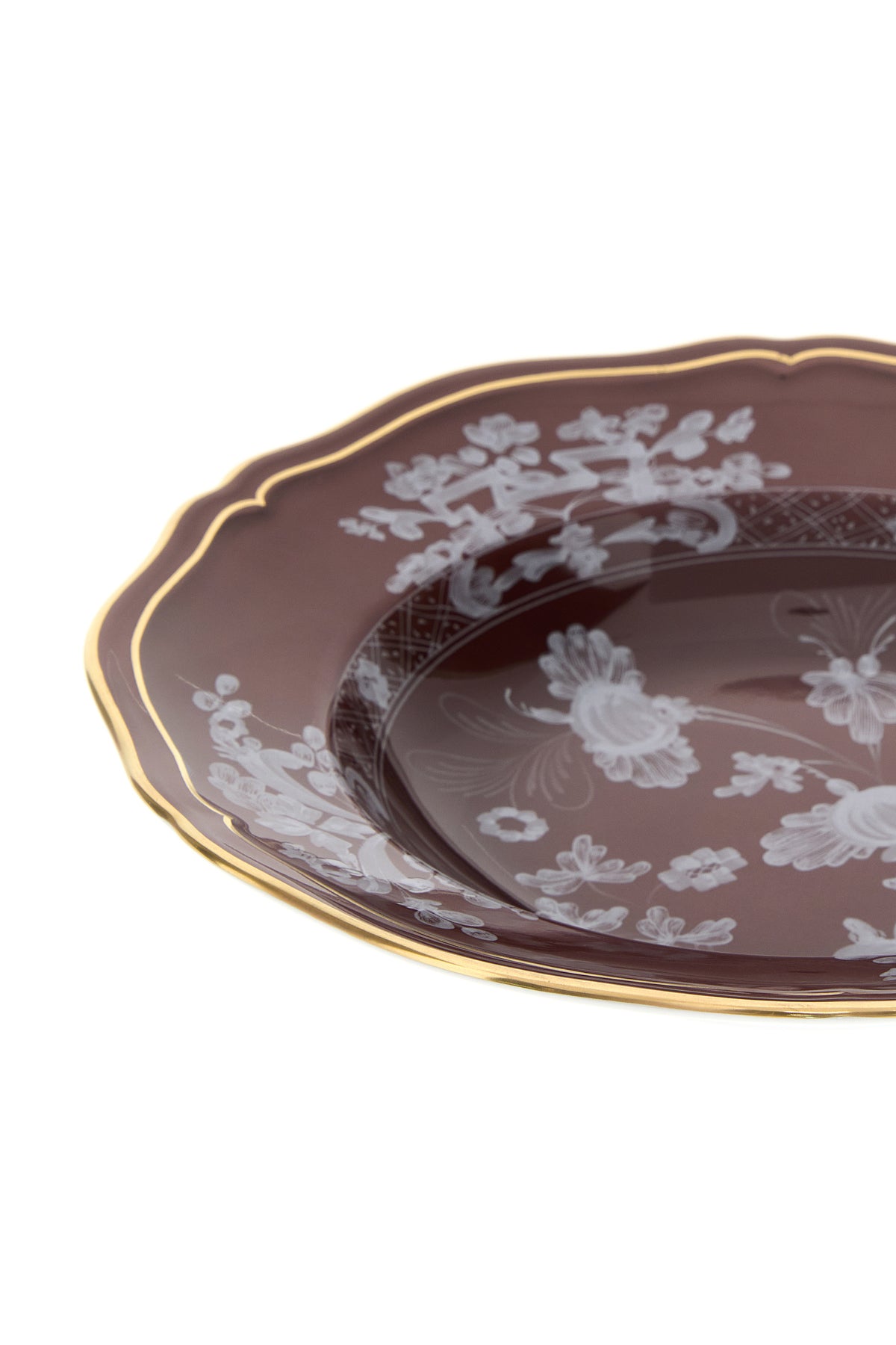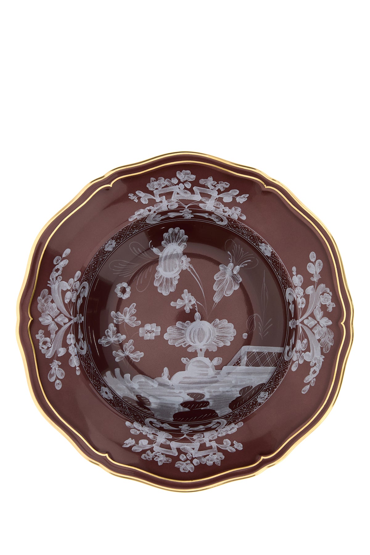 Soup plate from the Oriente Italiano collection realized in porcelain characterized by peculiar embellishment on the entire surface.