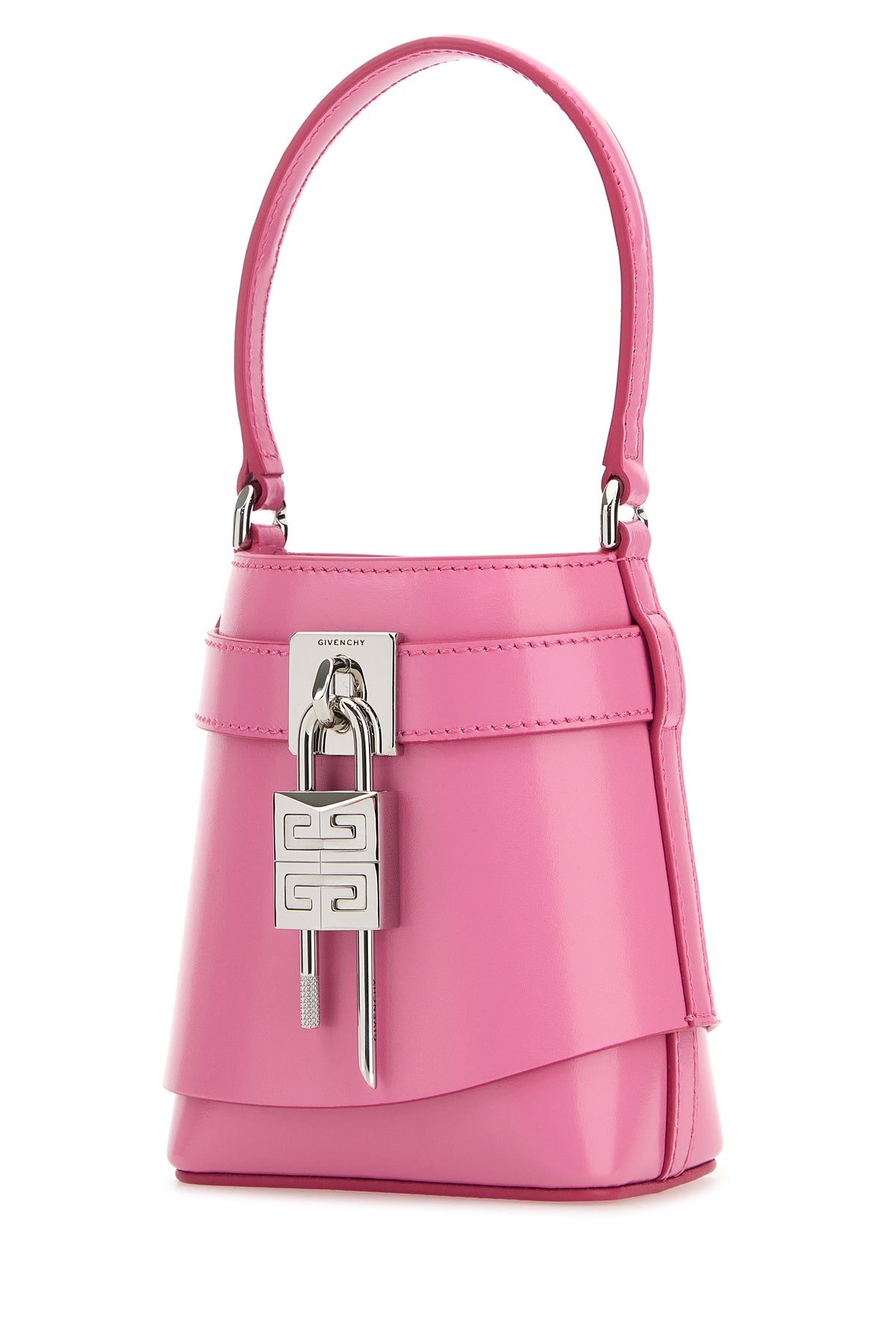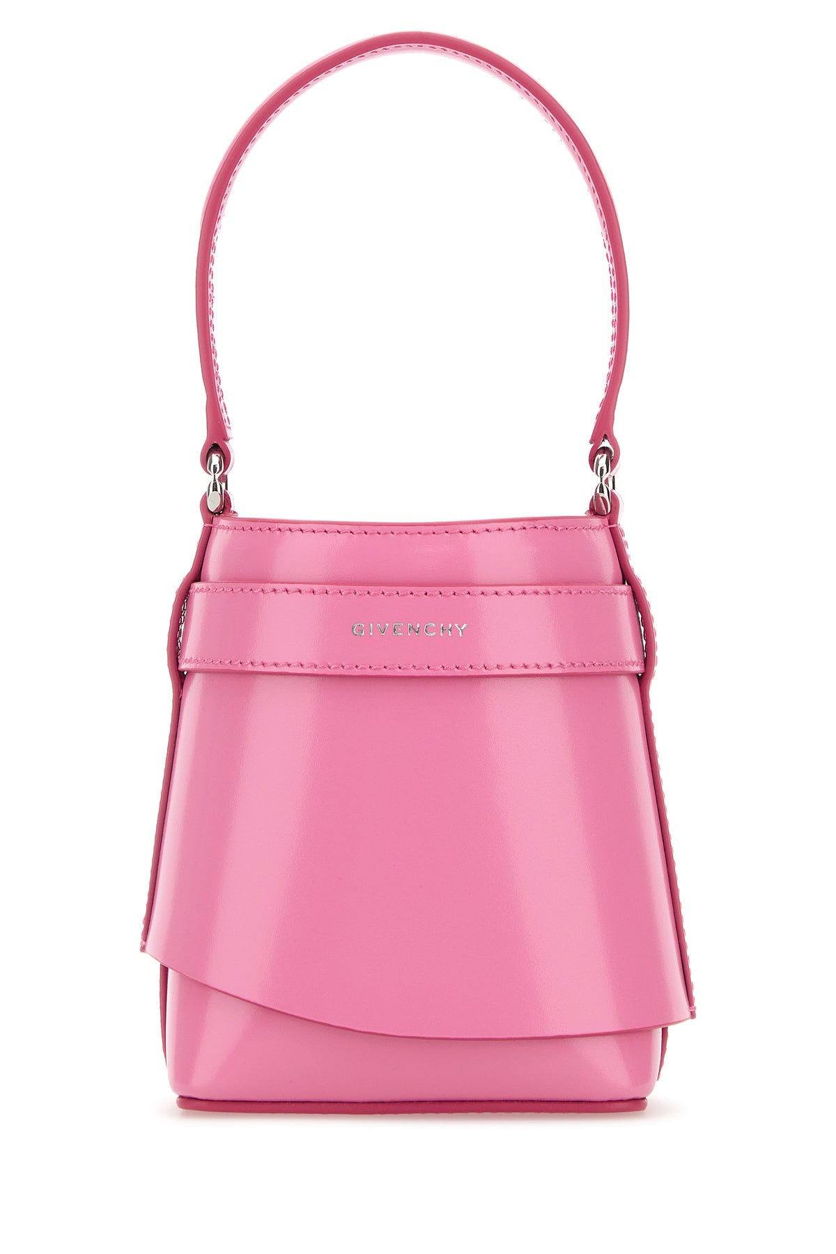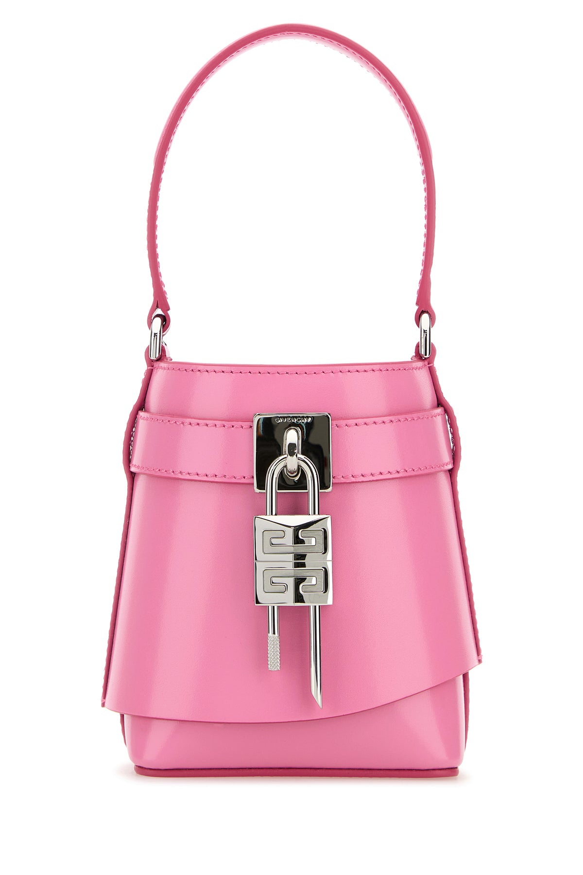 Bucket bag realized in smooth calf leather characterized by laminated printed logo at the back enriched by metal 4G lock at the front.