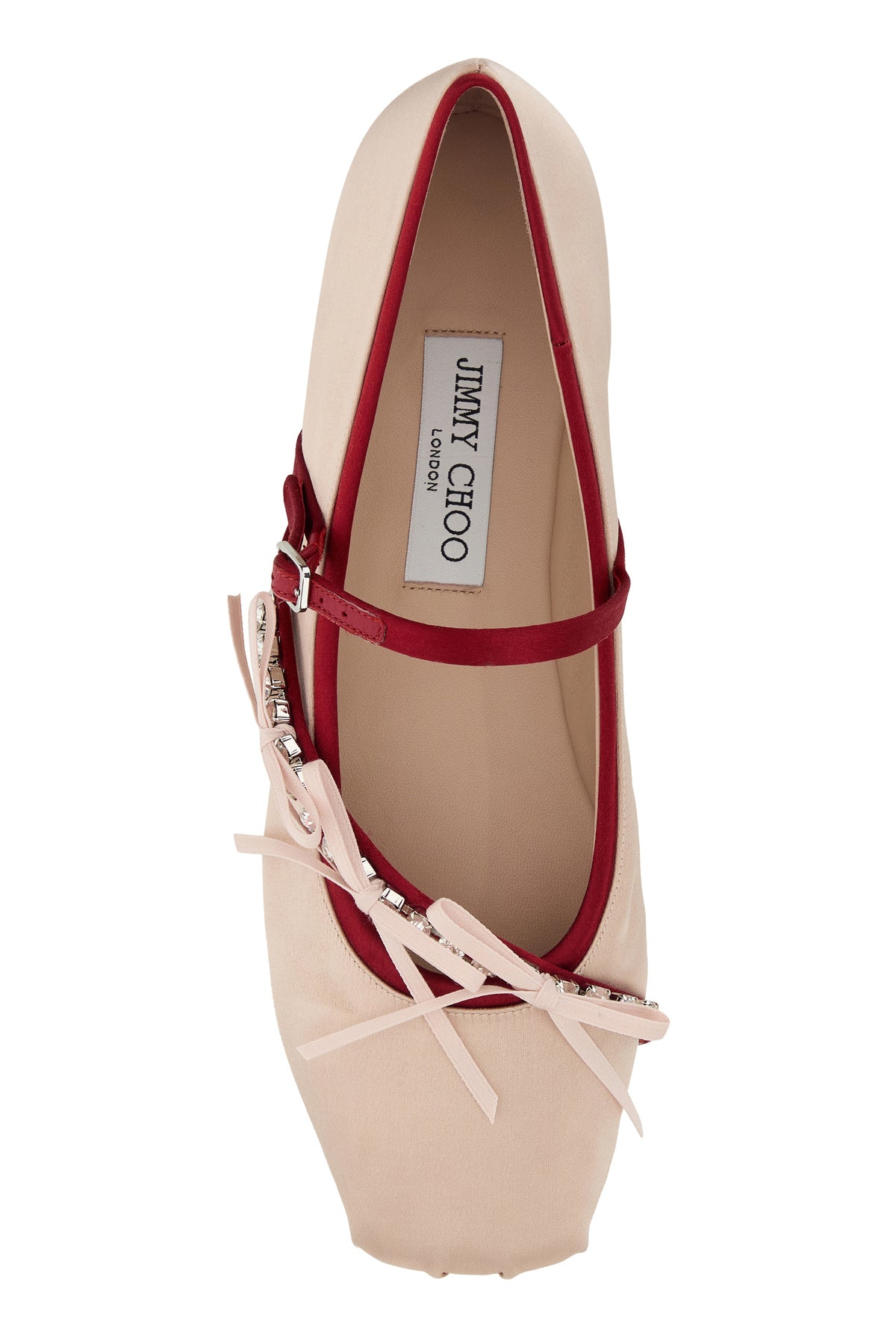 Ballerinas realized in satin enriched by jewel embellishment and decorative bows on the instep.
