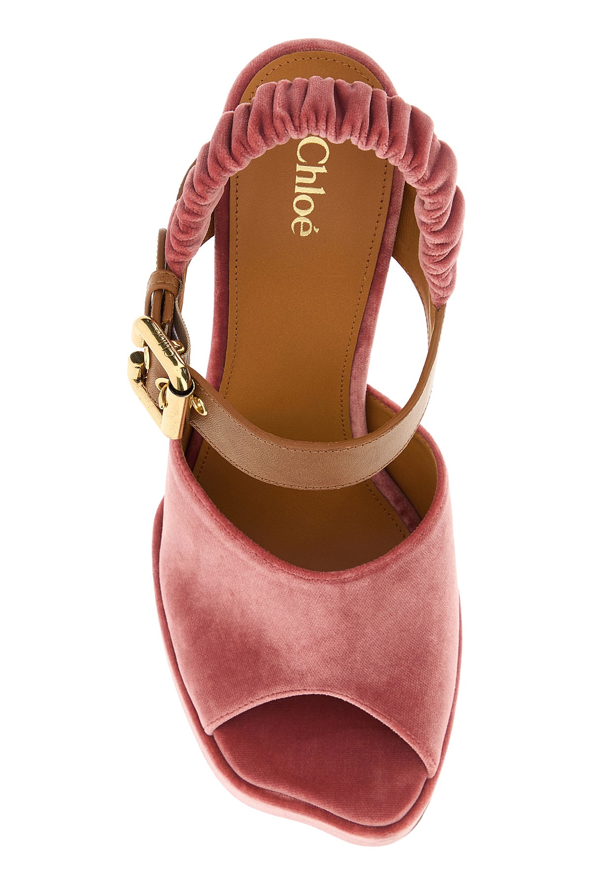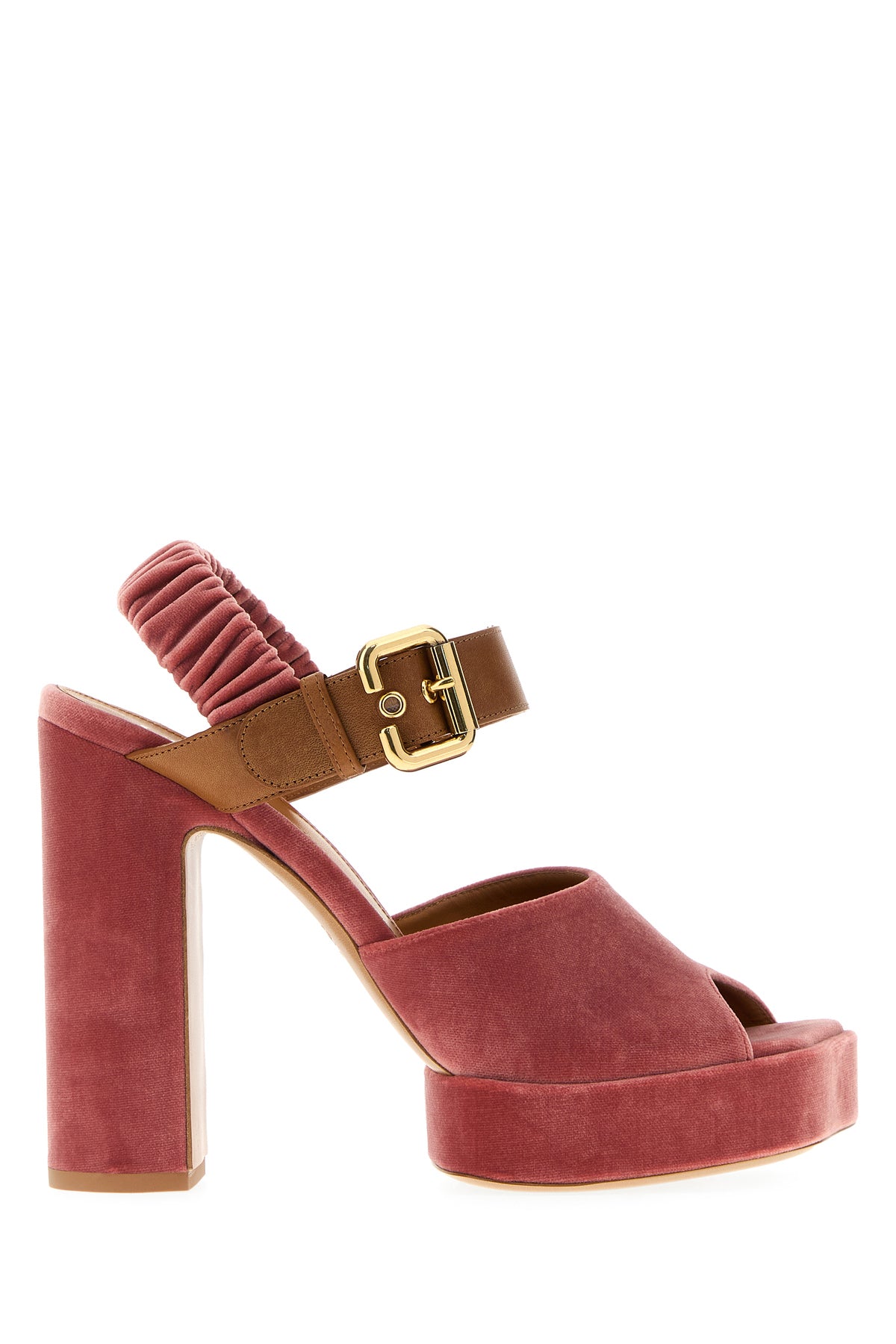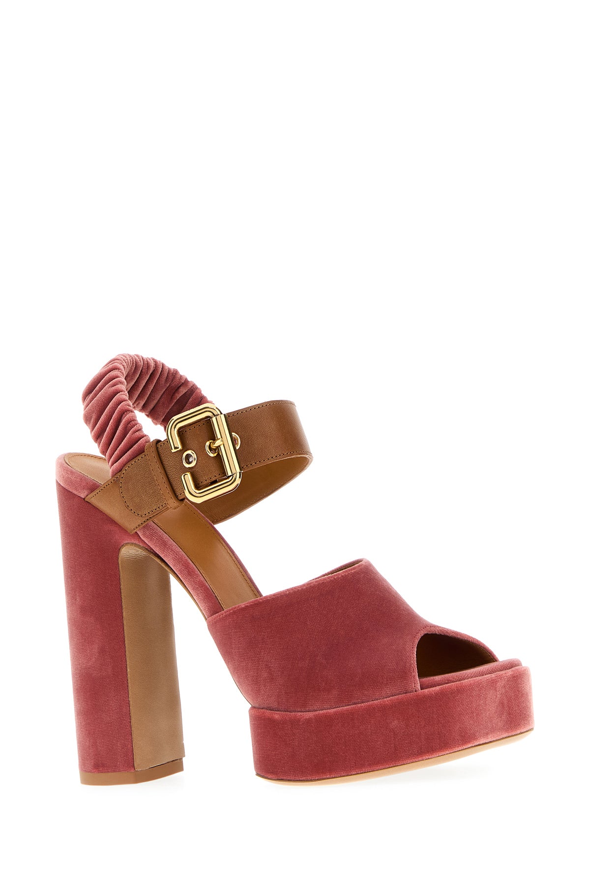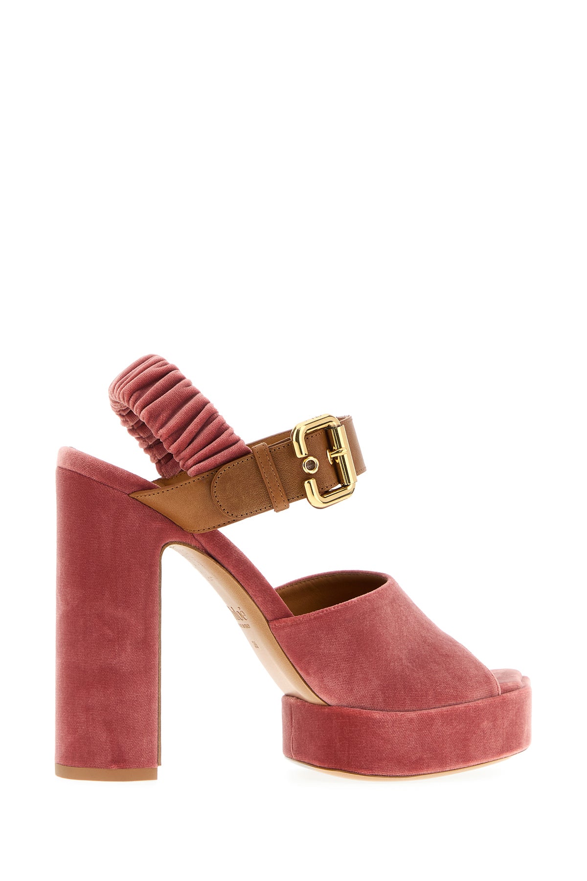 Sandals realized in velvet enriched by adjustable contrasting leather strap on the instep.