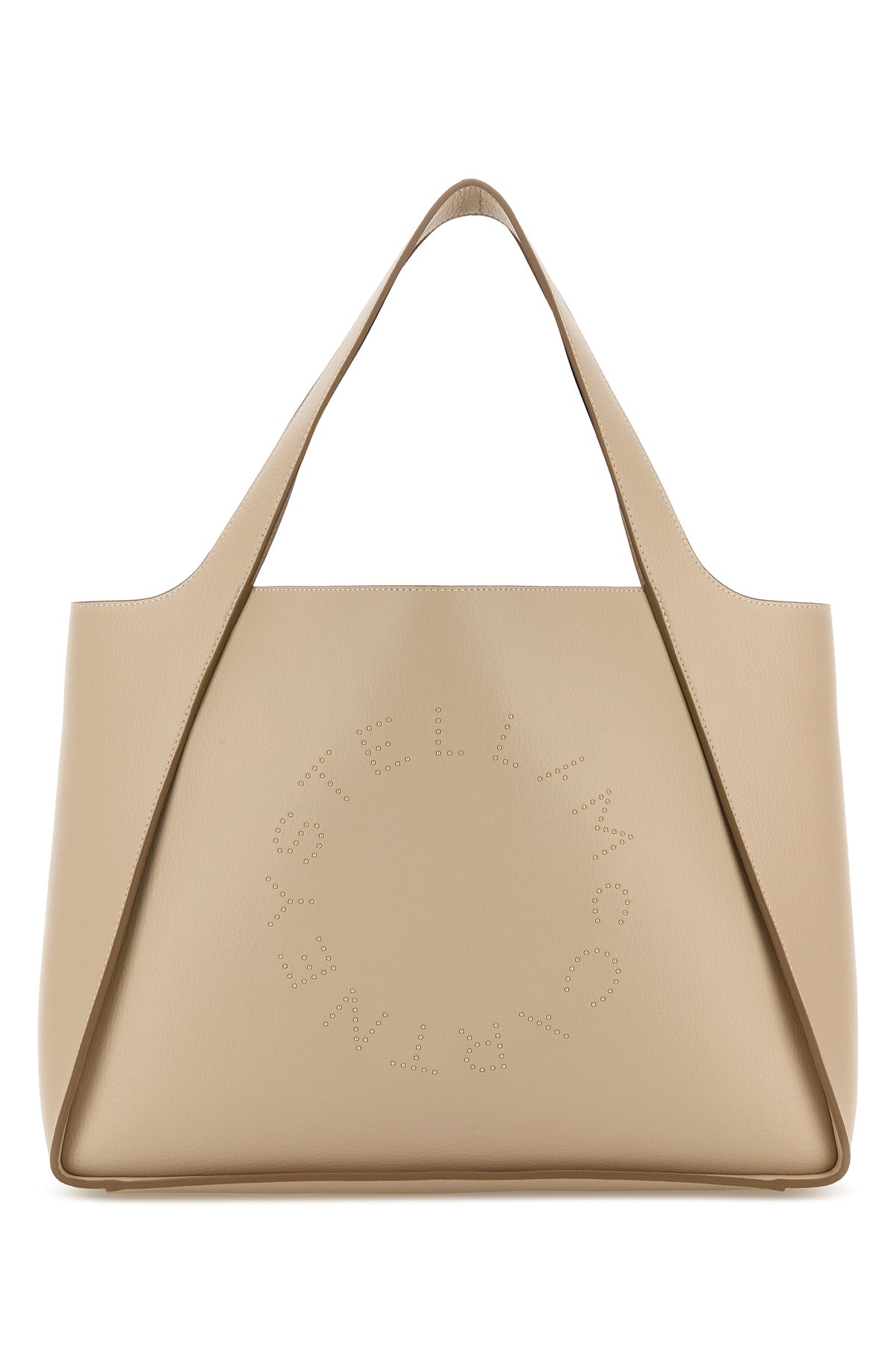 Shopping bag realized in alter mat enriched by logo with metal studs at the front.