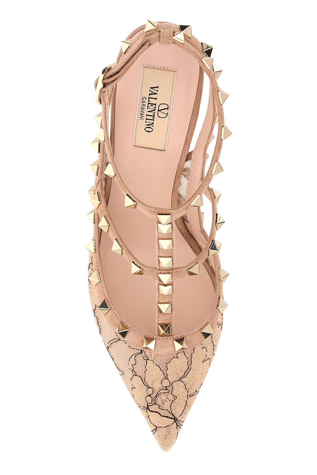 Slingback realized in lace and suede enriched by metal studs on the trimmings.