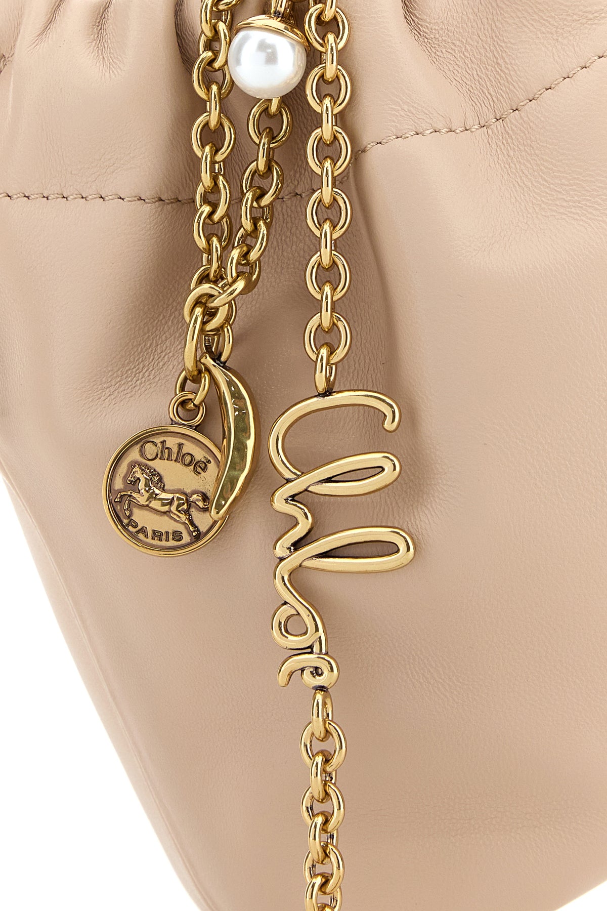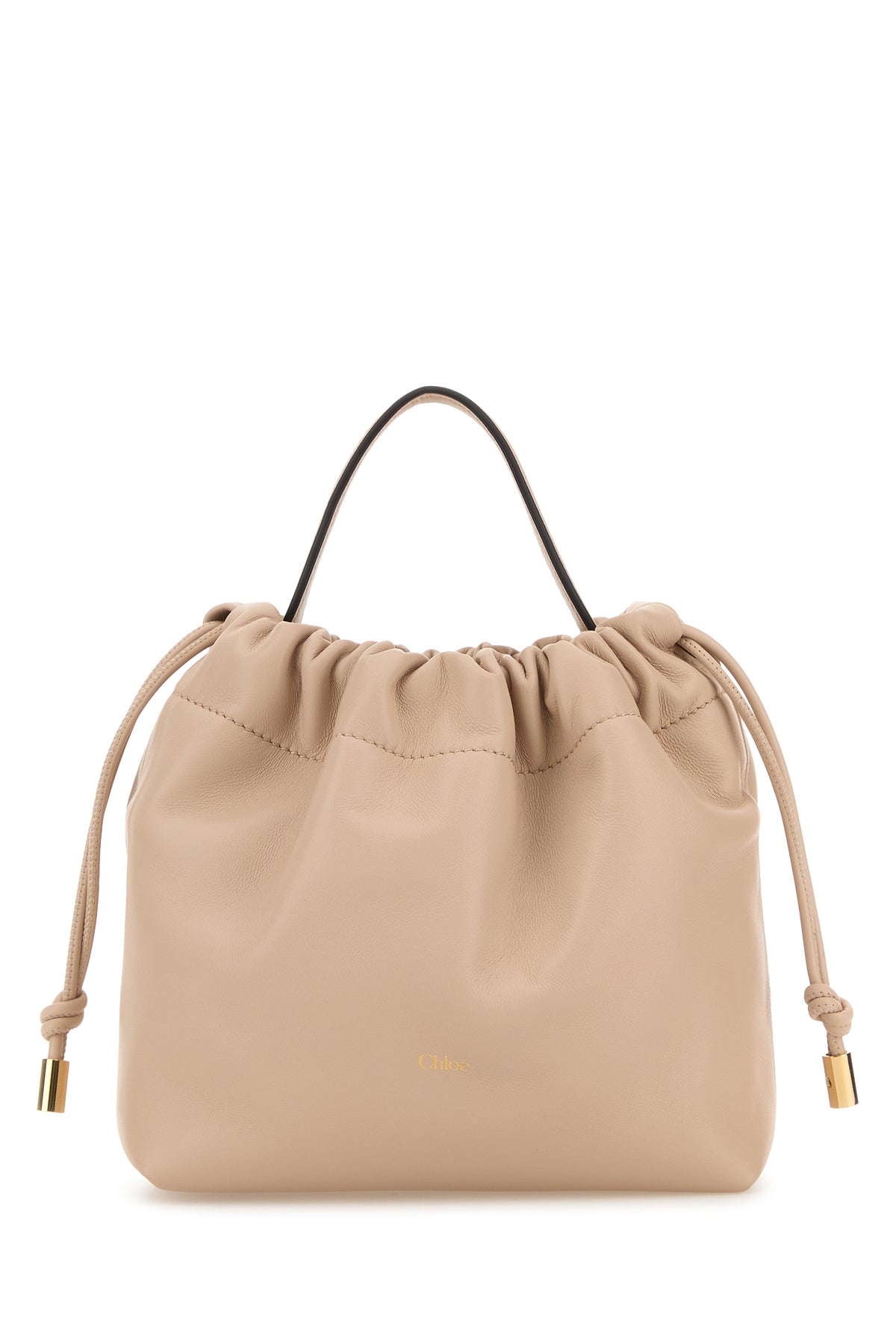 Handbag realized in pebble lamb leather characterized by pebble lamb leather characterized by laminated printed logo at the front.