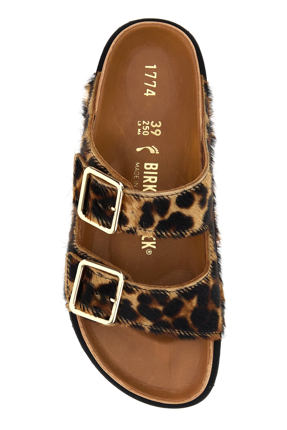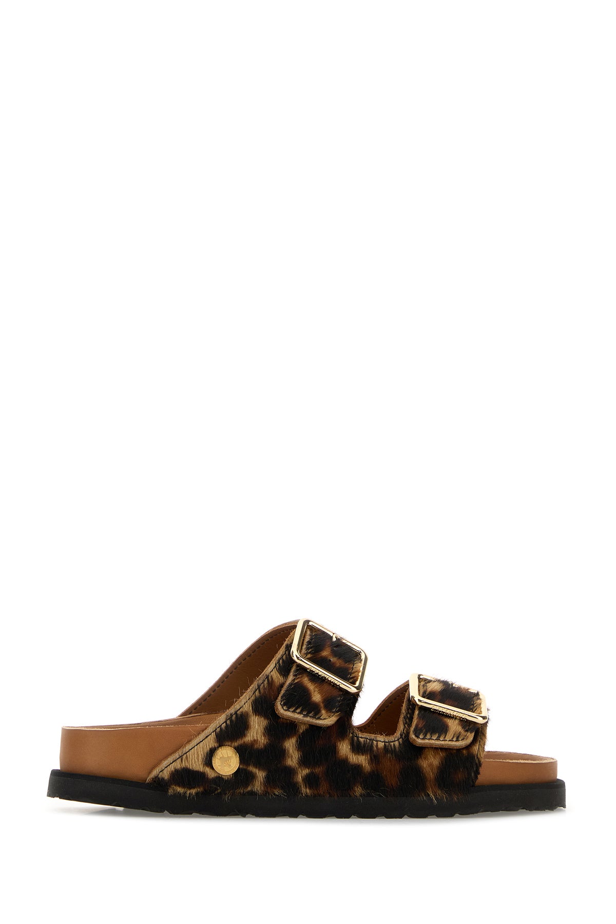 Slippers realized in calf hair characterized by animal print on the entire surface enriched by logoed metal detail on the side.