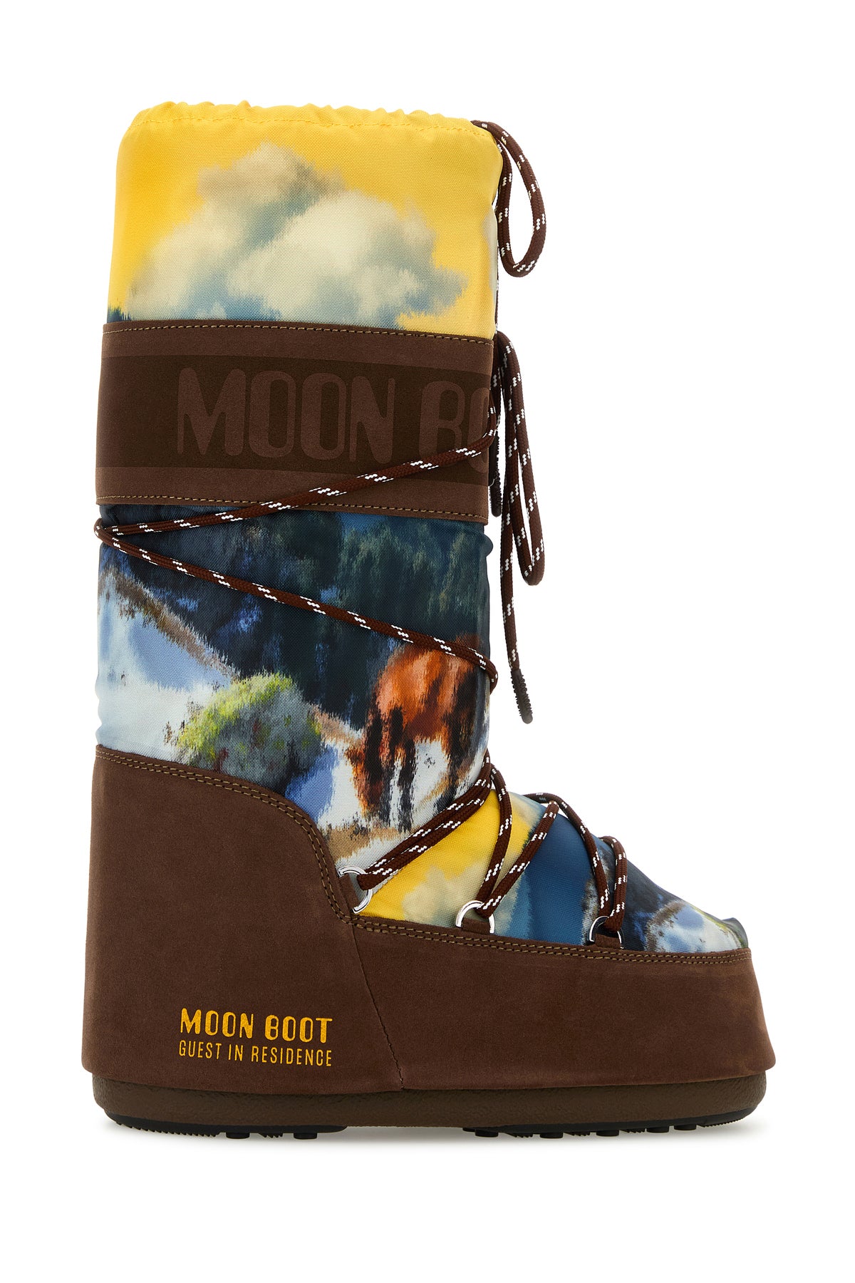 Printed canvas and suede Moon Boot x Guest In Residence Icon boots