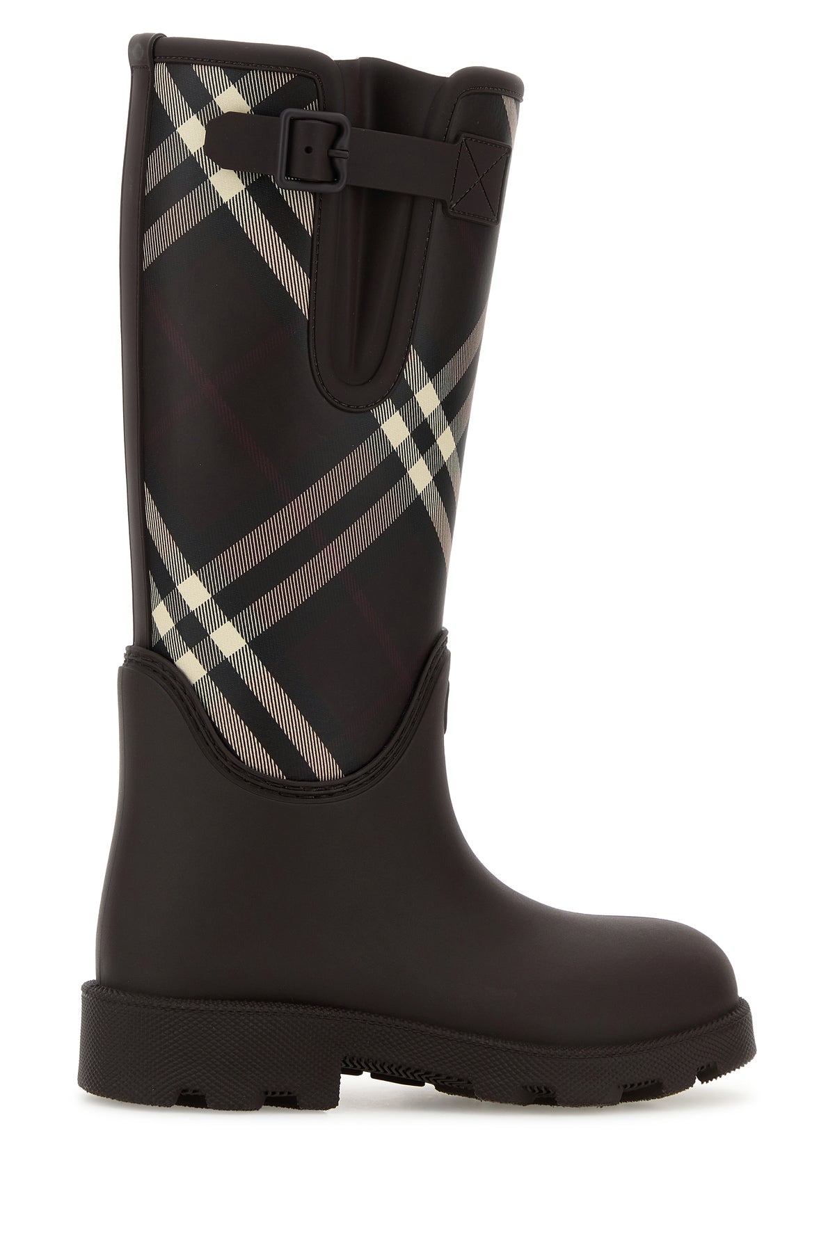 Boots realized in coated canvas with rubber insert on the hemline characterized by Burberry Check print enriched by Equestrian Knight patch at the front.