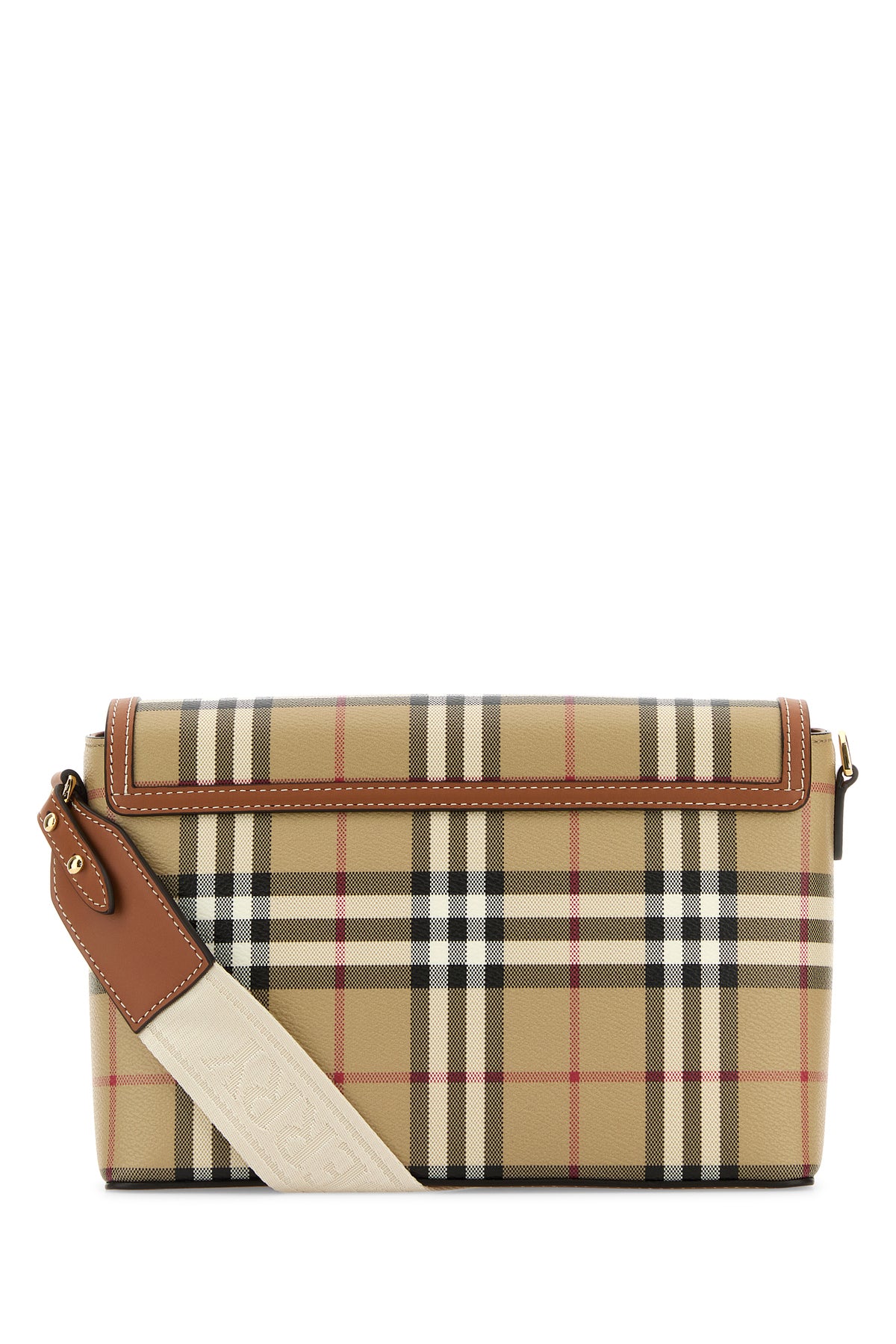 Crossbody bag realized in coated canvas characterized by Burberry Check print on the entire surface.