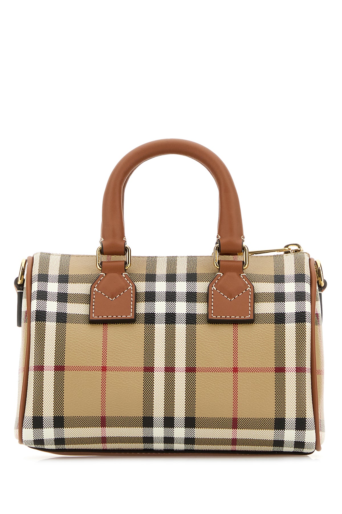 Handbag realized in coated canvas characterized by Burberry Check motif print on the entire surface enriched by detachable leather accessory.