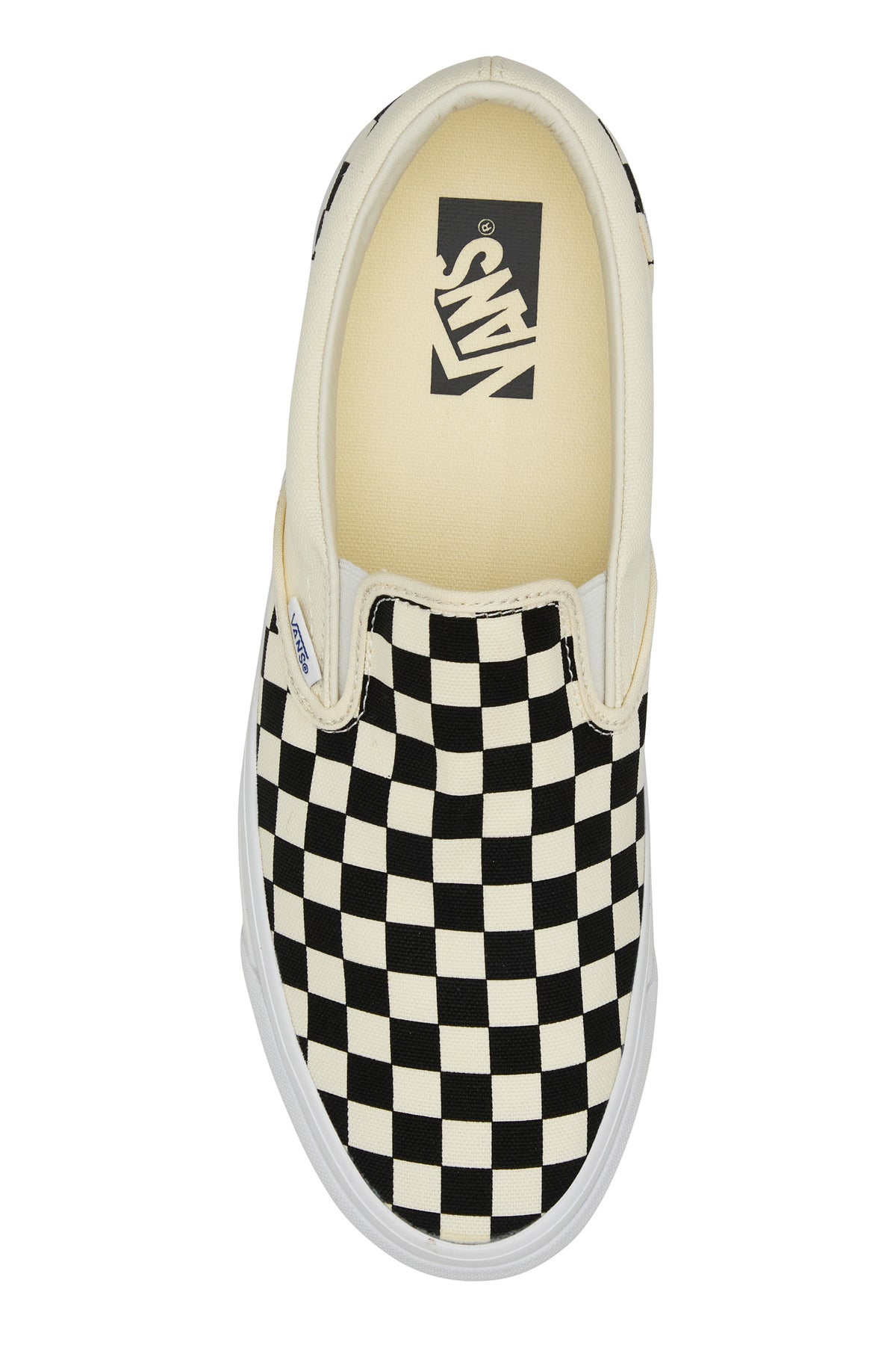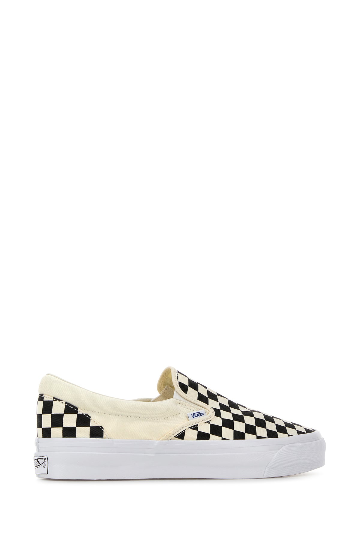 Slip ons realized in canvas characterized by Checkerboard print on the entire surface enriched by logoed label at the back.
