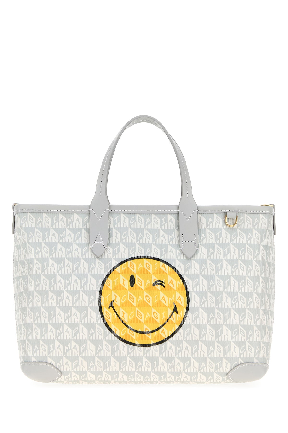 Handbag realized in coated canvas with leather trimmings characterized by Wink print at the front and I am a Plastic Bag print on the entire surface.