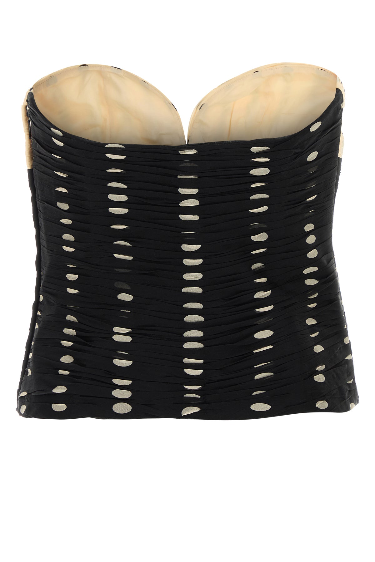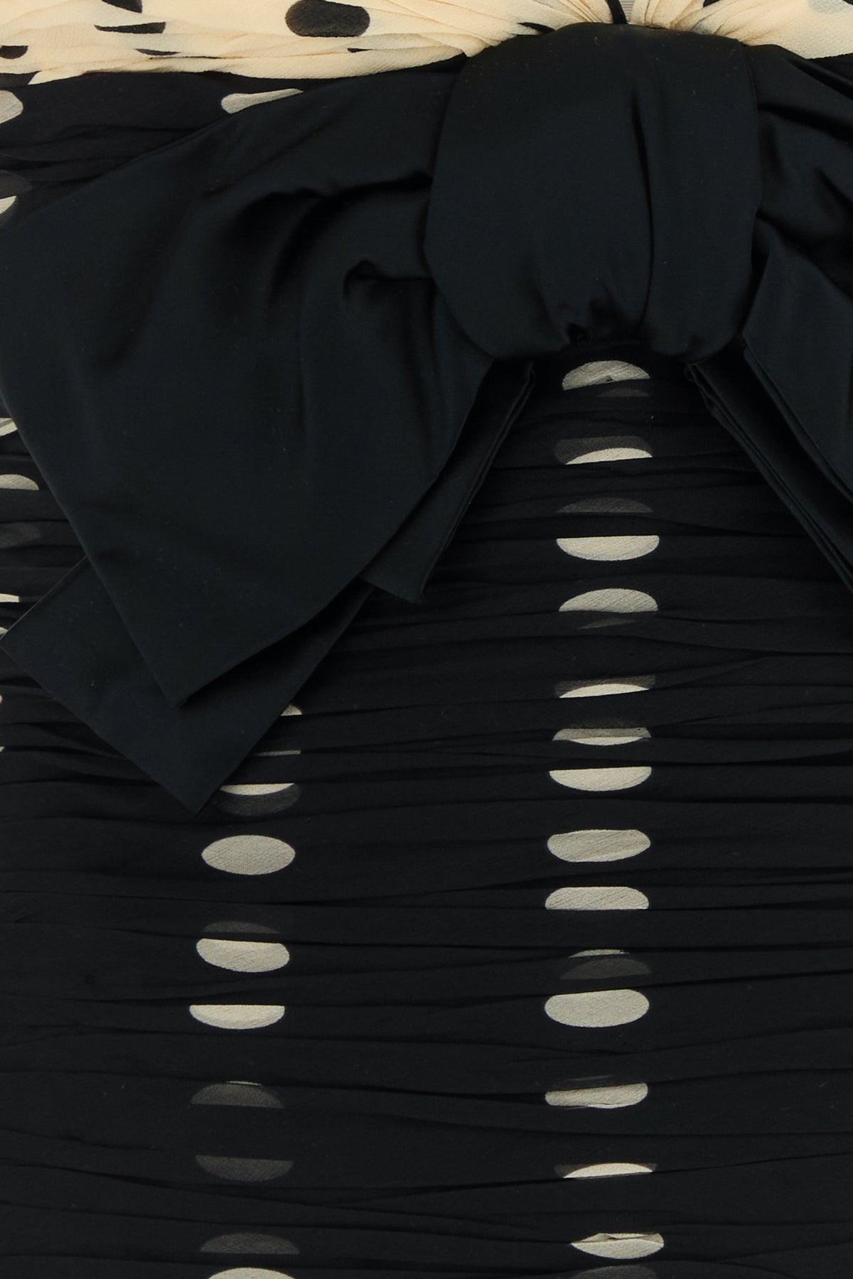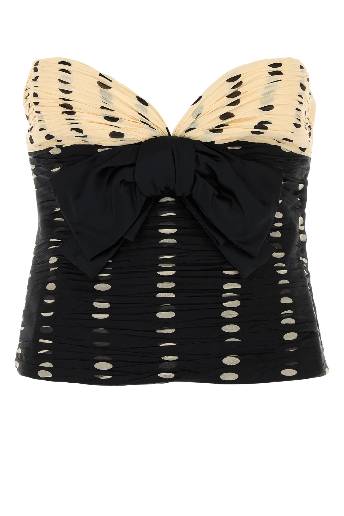 Draped top realized in pure silk chiffon characterized by Plusdepois print on the entire surface enriched by decorative bow at the front.