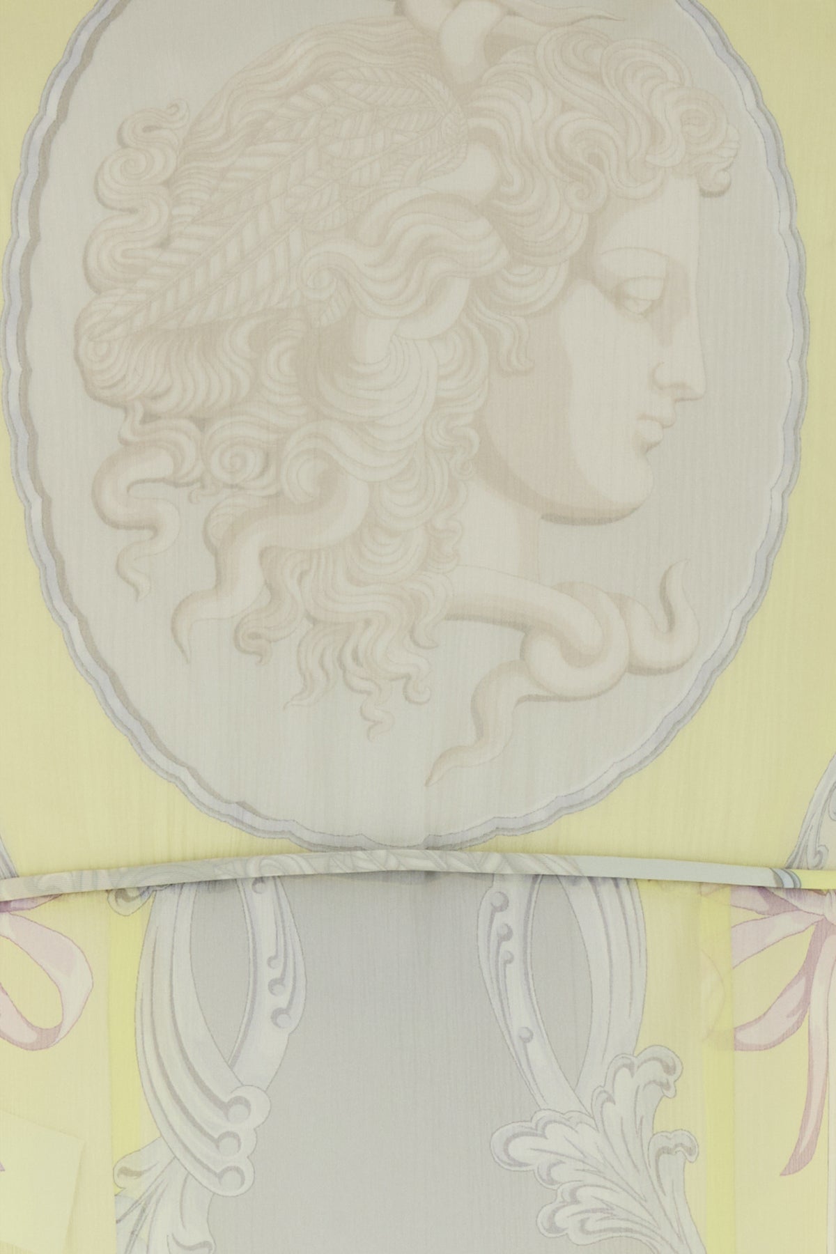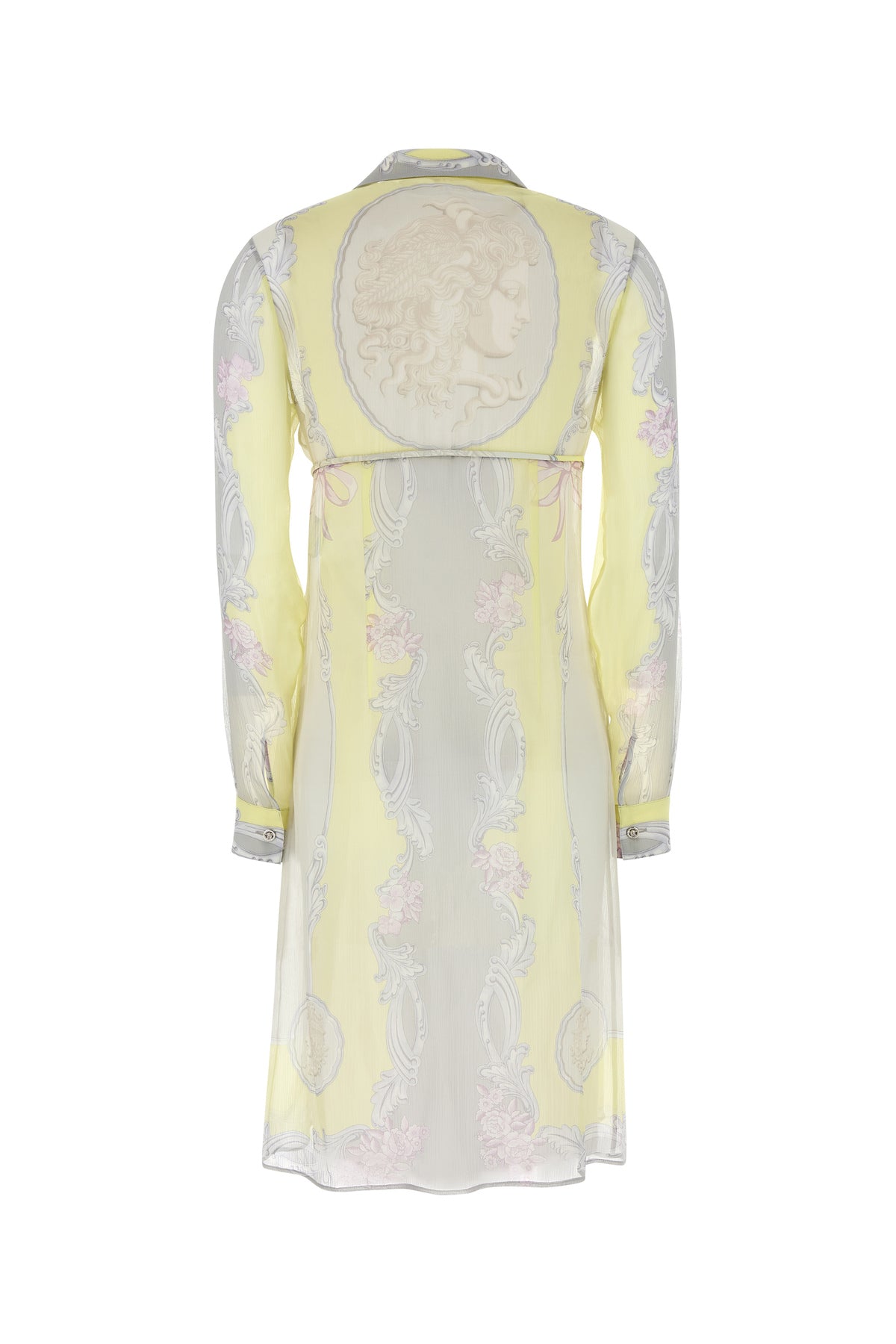 Shirt dress realized in pure silk crepe characterized by Medusa Cameo print on the entire surface.