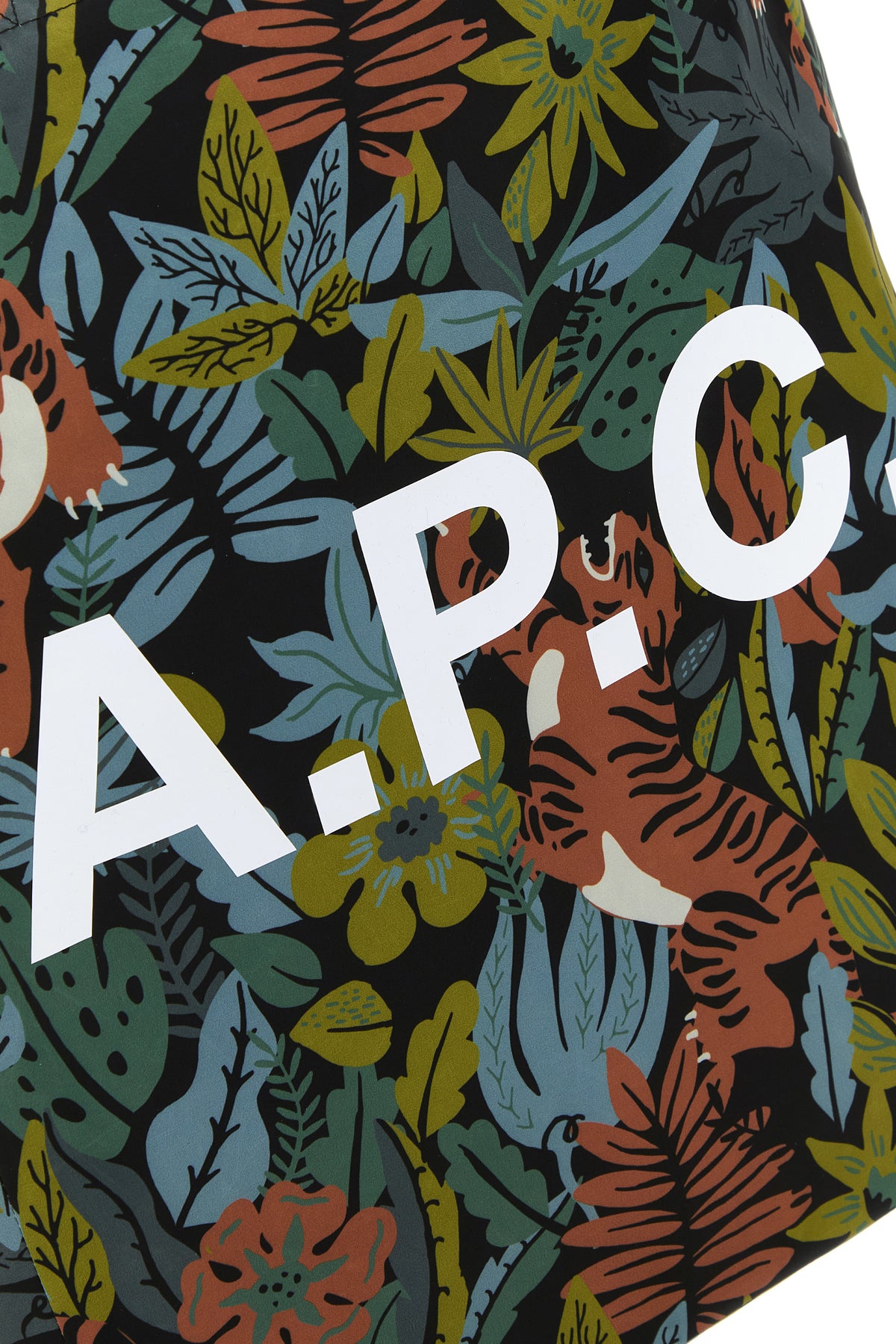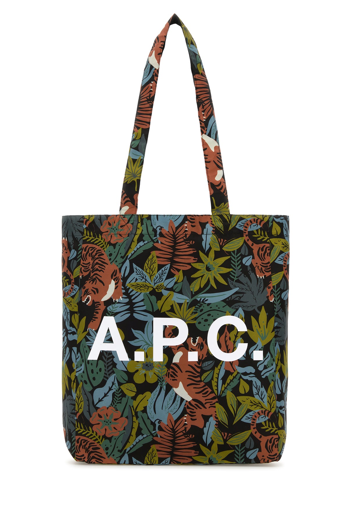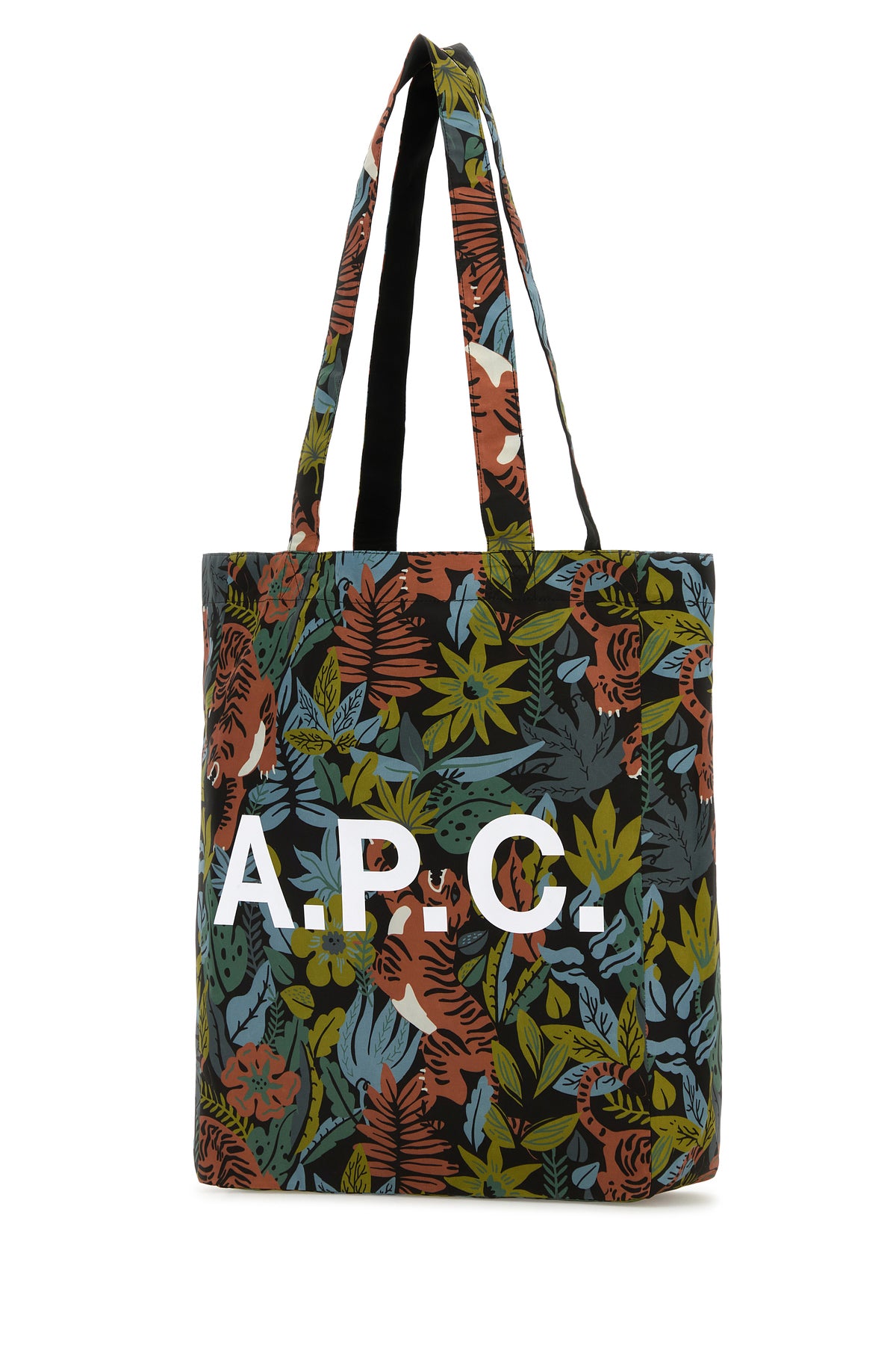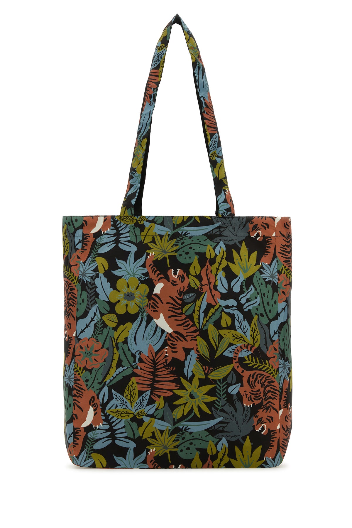 Shopping bag realized in fabric characterized by peculiar print on the entire surface and printed logo at the front.